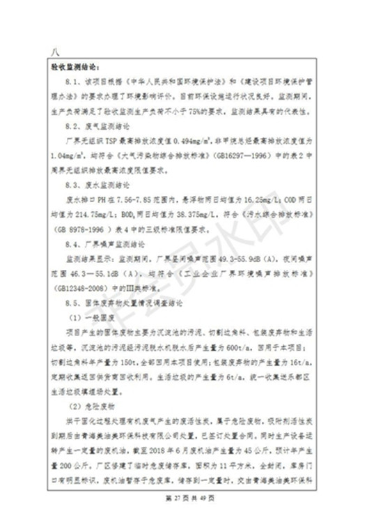 根據(jù)中華人民共和國國務(wù)院令第253號《建設(shè)項(xiàng)目環(huán)境保護(hù)管理?xiàng)l例》(中華人民共和國國務(wù)院令第682號《國務(wù)院關(guān)于修改〈建設(shè)項(xiàng)目環(huán)境保護(hù)管理?xiàng)l例〉的決定》和《建設(shè)項(xiàng)目竣工環(huán)境保護(hù)驗(yàn)收暫行辦法》,嚴(yán)格依照有關(guān)法律法規(guī),建設(shè)項(xiàng)目環(huán)境保護(hù)設(shè)施驗(yàn)收技術(shù)規(guī)范,本項(xiàng)目環(huán)評報告表和環(huán)保審批部門審批意見以及企業(yè)自行驗(yàn)收相關(guān)要求等對本項(xiàng)目進(jìn)行驗(yàn)收,本項(xiàng)目符合環(huán)保驗(yàn)收條件,可以通過環(huán)保驗(yàn)收。 海東市樂都區(qū)同泰科技有限公司竣工環(huán)境保護(hù)驗(yàn)收監(jiān)測報告公示