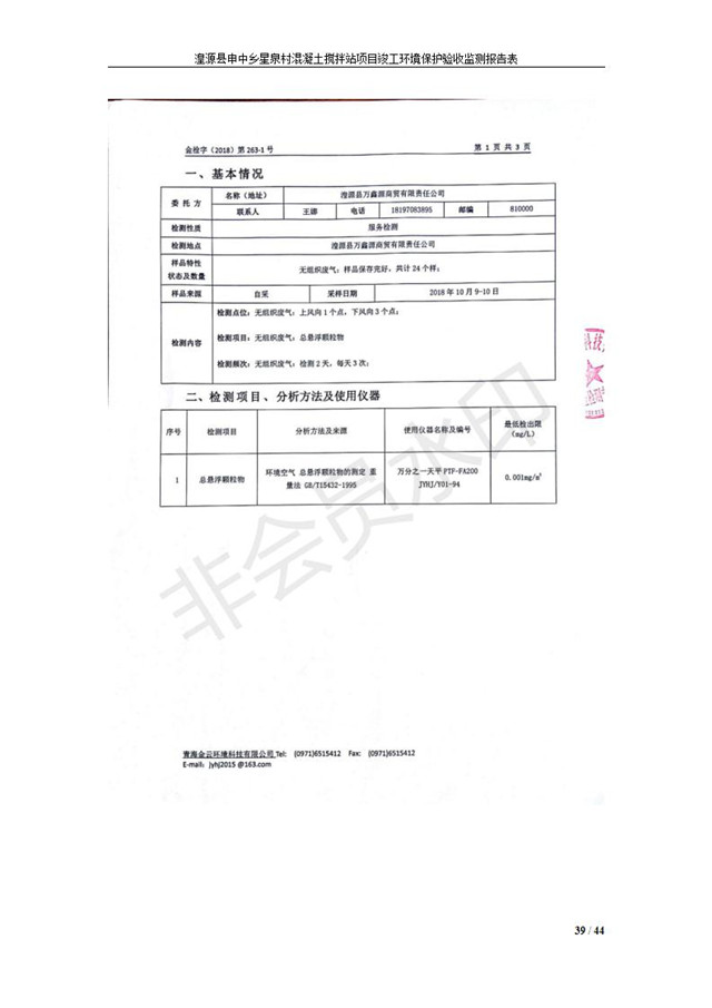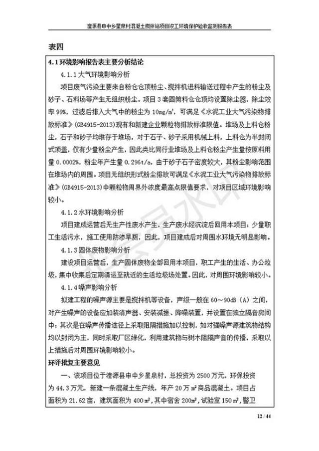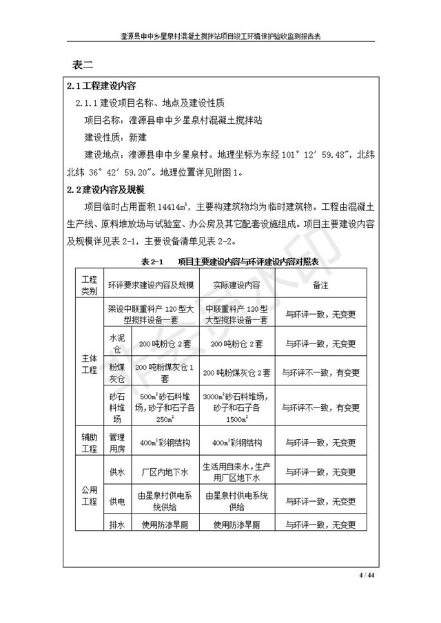 湟源縣申中鄉(xiāng)星泉村混凝土攪拌站項目竣工環(huán)境保護(hù)驗收監(jiān)測報告表公示