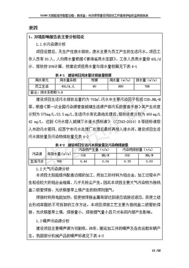 500MW太陽能組件配套邊框、接線盒、光伏焊帶建設(shè)項(xiàng)目竣工環(huán)境保護(hù)驗(yàn)收監(jiān)測報(bào)告表公示