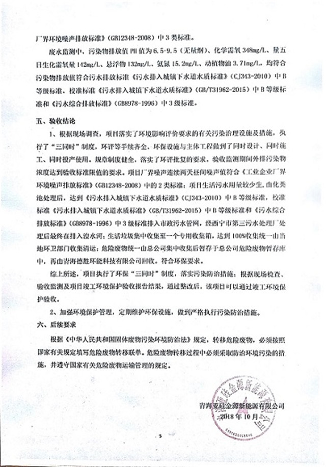 根據(jù)中華人民共和國國務(wù)院令第253號(hào)《建設(shè)項(xiàng)目環(huán)境保護(hù)管理?xiàng)l例》(中華人民共和國國務(wù)院令第682號(hào)《國務(wù)院關(guān)于修改〈建設(shè)項(xiàng)目環(huán)境保護(hù)管理?xiàng)l例〉的決定》和《建設(shè)項(xiàng)目竣工環(huán)境保護(hù)驗(yàn)收暫行辦法》,嚴(yán)格依照有關(guān)法律法規(guī),建設(shè)項(xiàng)目環(huán)境保護(hù)設(shè)施驗(yàn)收技術(shù)規(guī)范,本項(xiàng)目環(huán)評(píng)報(bào)告表和環(huán)保審批部門審批意見以及企業(yè)自行驗(yàn)收相關(guān)要求等對(duì)本項(xiàng)目進(jìn)行驗(yàn)收,本項(xiàng)目符合環(huán)保驗(yàn)收條件,可以通過環(huán)保驗(yàn)收。 現(xiàn)將本項(xiàng)目竣工環(huán)境保護(hù)驗(yàn)收情況進(jìn)行公開,并征求公眾意見。一、征求意見日期:自公示之日起20個(gè)工作日 二、征求意見期間,驗(yàn)收組接受反映公示的建設(shè)項(xiàng)目竣工環(huán)境保護(hù)驗(yàn)收情況和問題的來信、來訪和來電。 三、聯(lián)系方式 聯(lián)系人:張工 電 話:15297122093 通訊地址:青海省西寧市城北區(qū)經(jīng)四路創(chuàng)新創(chuàng)業(yè)大廈22號(hào)