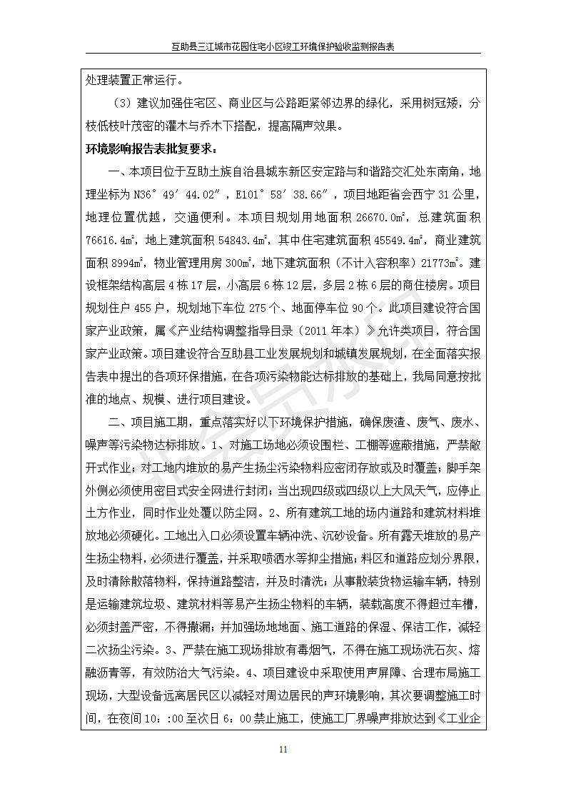 互助縣三江城市花園住宅小區(qū)竣工環(huán)境保護(hù)驗(yàn)收監(jiān)測報告表公示發(fā)布日期:(2019-6-5) 點(diǎn)擊次數(shù):2547 |