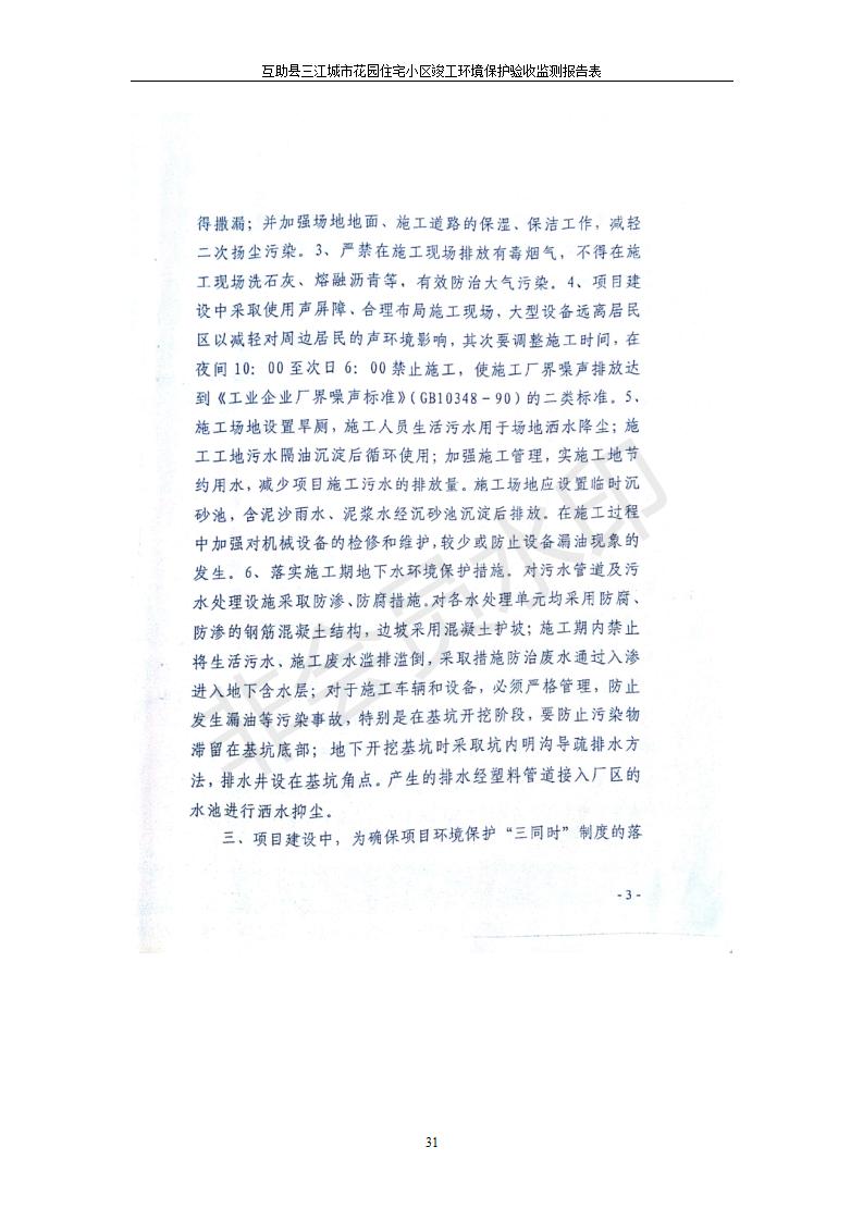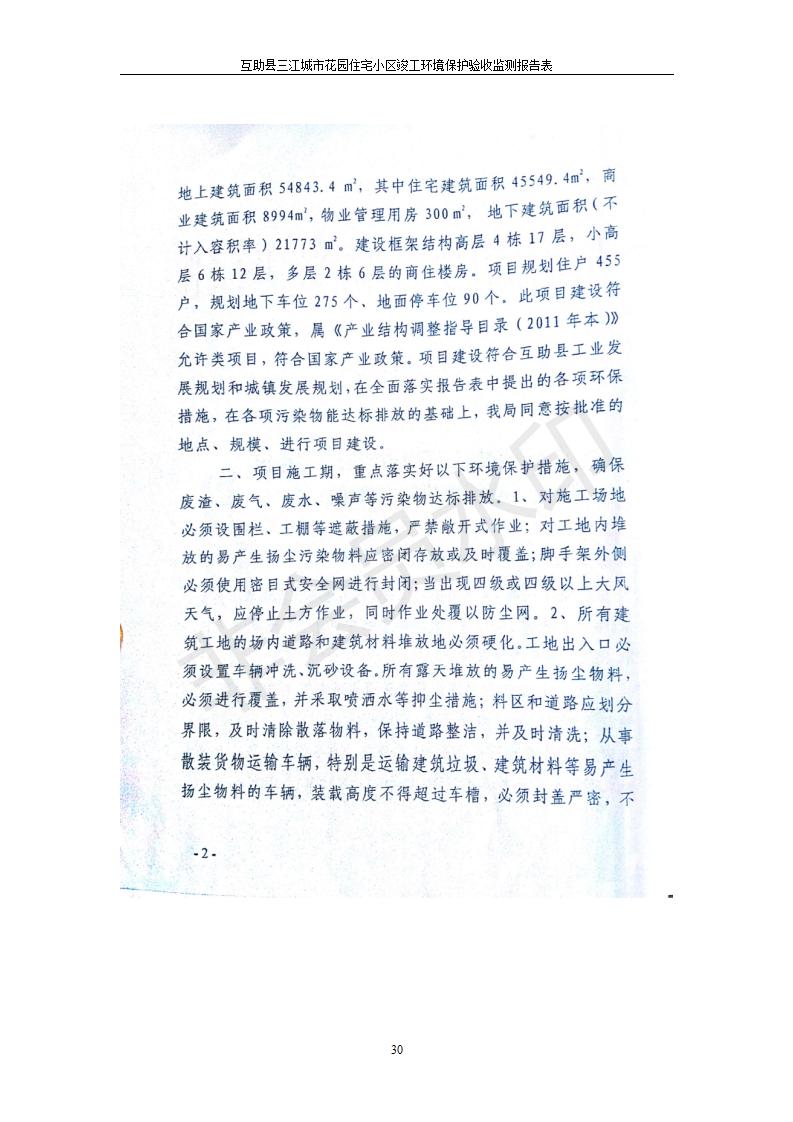 根據(jù)中華人民共和國國務(wù)院令第682號《國務(wù)院關(guān)于修改〈建設(shè)項(xiàng)目環(huán)境保護(hù)管理?xiàng)l例〉的決定》和《建設(shè)項(xiàng)目竣工環(huán)境保護(hù)驗(yàn)收暫行辦法》(國務(wù)院令682號),互助縣三江城市花園住宅小區(qū)(包括竣工環(huán)境保護(hù)驗(yàn)收監(jiān)測報告表和驗(yàn)收意見)公示如下。 一、項(xiàng)目名稱: 互助縣三江城市花園住宅小區(qū)竣工環(huán)境保護(hù)驗(yàn)收監(jiān)測報告表 二、地點(diǎn):青海省海東市互助土族自治縣威遠(yuǎn)鎮(zhèn)安定路與和諧路交匯處東南角 三、建設(shè)單位:青海三兄房地產(chǎn)開發(fā)有限公司 四、建設(shè)內(nèi)容:項(xiàng)目規(guī)劃用地面積26670.0m2,實(shí)際占地面積26670.0m2,項(xiàng)目占地面積未發(fā)生變化,規(guī)劃設(shè)計建筑總面積76616.4m2,其中商業(yè)建筑面積8994m2。實(shí)際建筑總面積58639.64m2,其中商業(yè)建筑面積9894.27m2。 五、聯(lián)系人:張工 六、聯(lián)系電 話:0971-6515411 七、公示時間:二〇一九年六月五日至二〇一九年七月三日 公示期間,對上述公示內(nèi)容如有異議,請以書面形式反饋,個人須署真實(shí)姓名,單位須加蓋公章。