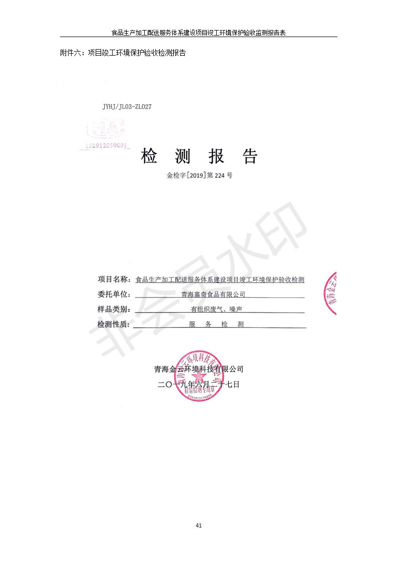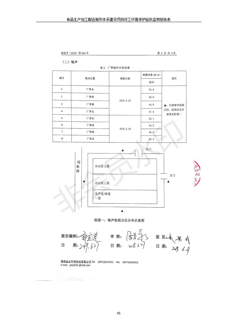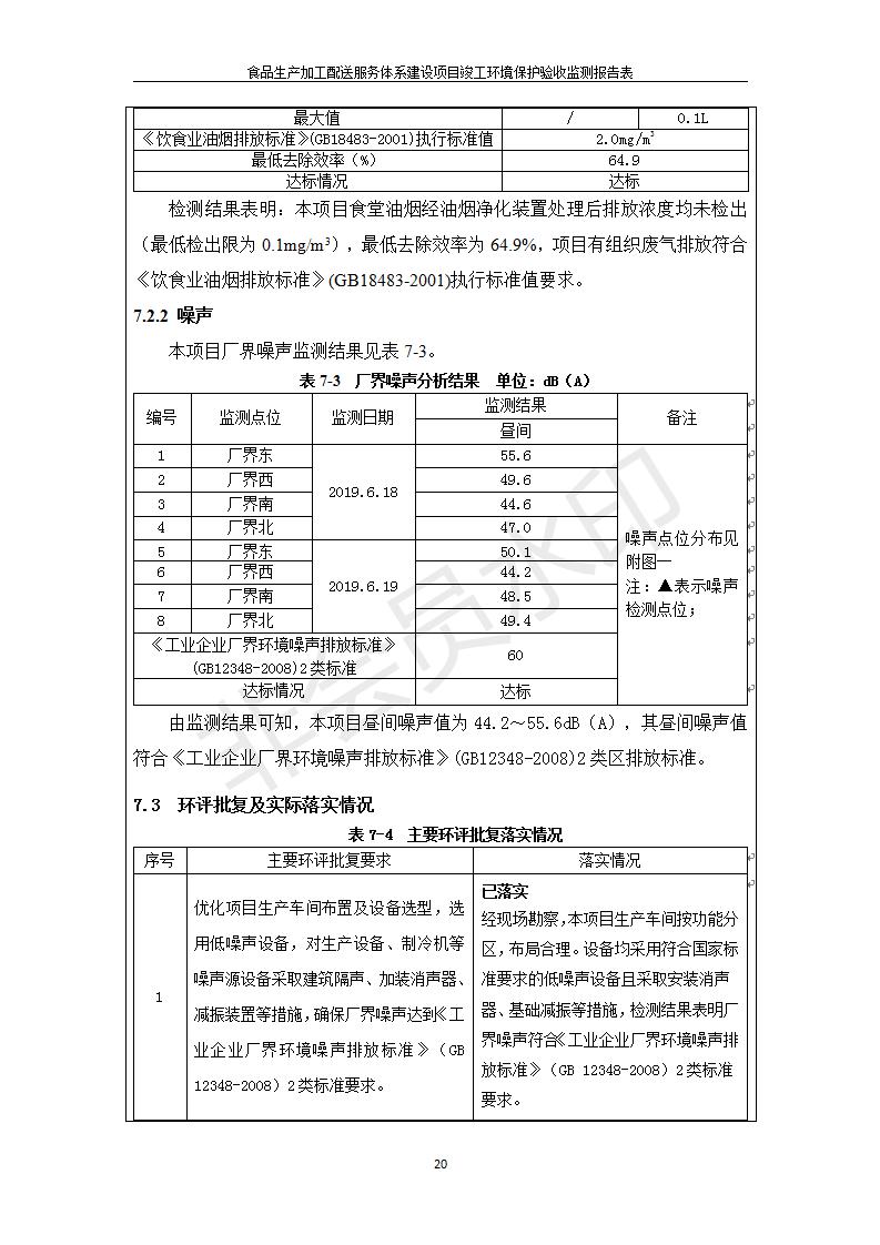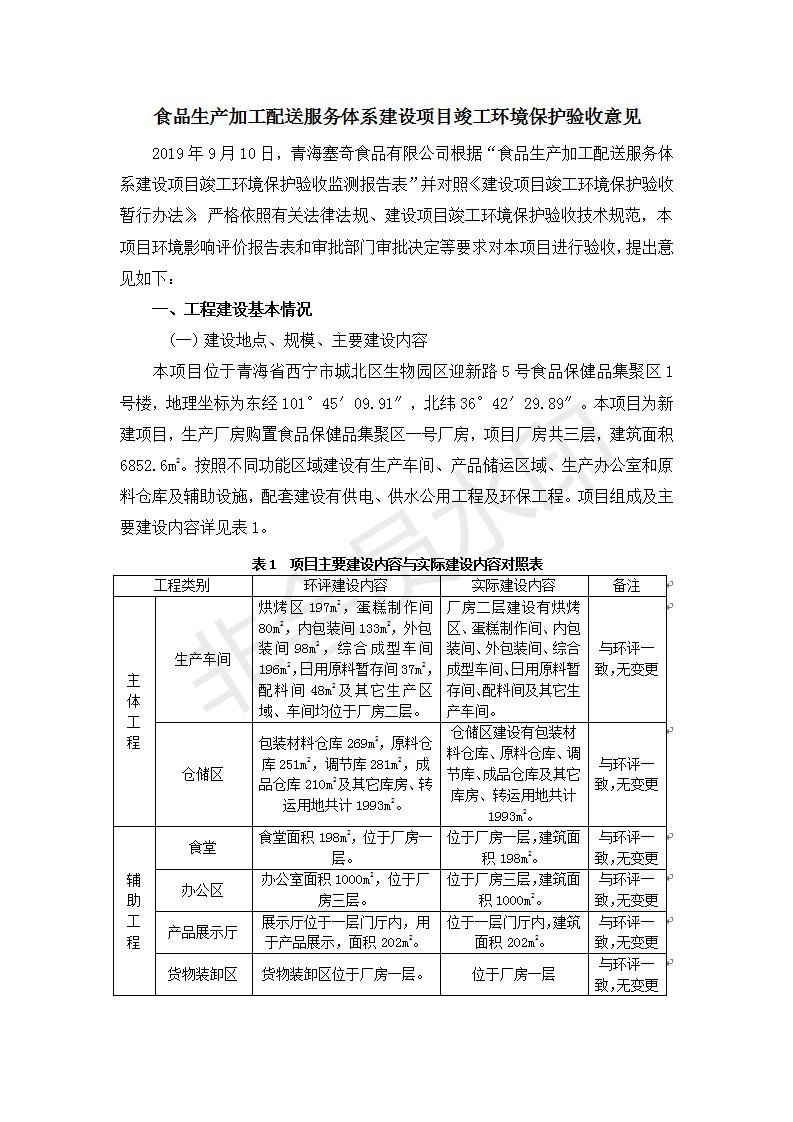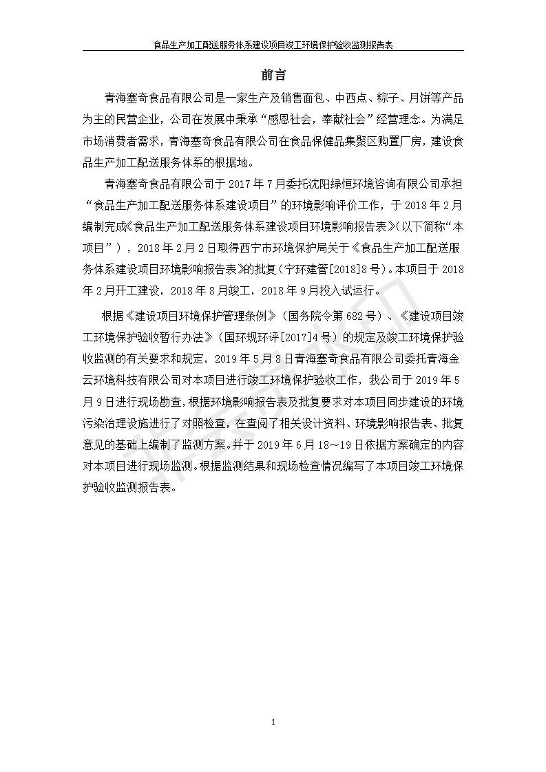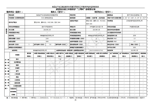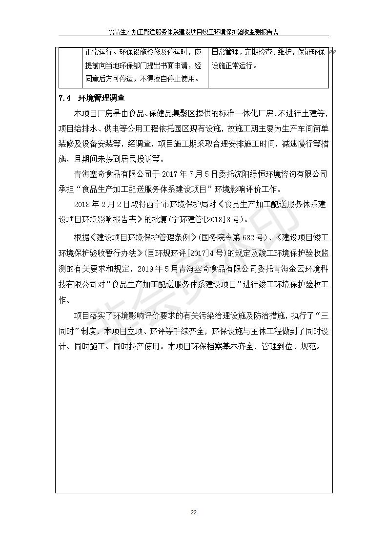 根據(jù)中華人民共和國(guó)國(guó)務(wù)院令第682號(hào)《國(guó)務(wù)院關(guān)于修改〈建設(shè)項(xiàng)目環(huán)境保護(hù)管理?xiàng)l例〉的決定》和《建設(shè)項(xiàng)目竣工環(huán)境保護(hù)驗(yàn)收暫行辦法》(國(guó)務(wù)院令682號(hào)),食品生產(chǎn)加工配送服務(wù)體系建設(shè)項(xiàng)目(包括竣工環(huán)境保護(hù)驗(yàn)收監(jiān)測(cè)報(bào)告表和驗(yàn)收意見)公示如下。 一、項(xiàng)目名稱:食品生產(chǎn)加工配送服務(wù)體系建設(shè)項(xiàng)目 二、地點(diǎn):西寧市城北區(qū)生物園區(qū)迎新路5號(hào)食品保健品集聚區(qū)1號(hào)樓 六、聯(lián)系電 話:0971-6515411 七、公示時(shí)間:二〇一九年九月二十日至二〇一九年十月二十二日 公示期間,對(duì)上述公示內(nèi)容如有異議,請(qǐng)以書面形式反饋,個(gè)人須署真實(shí)姓名,單位須加蓋公章。