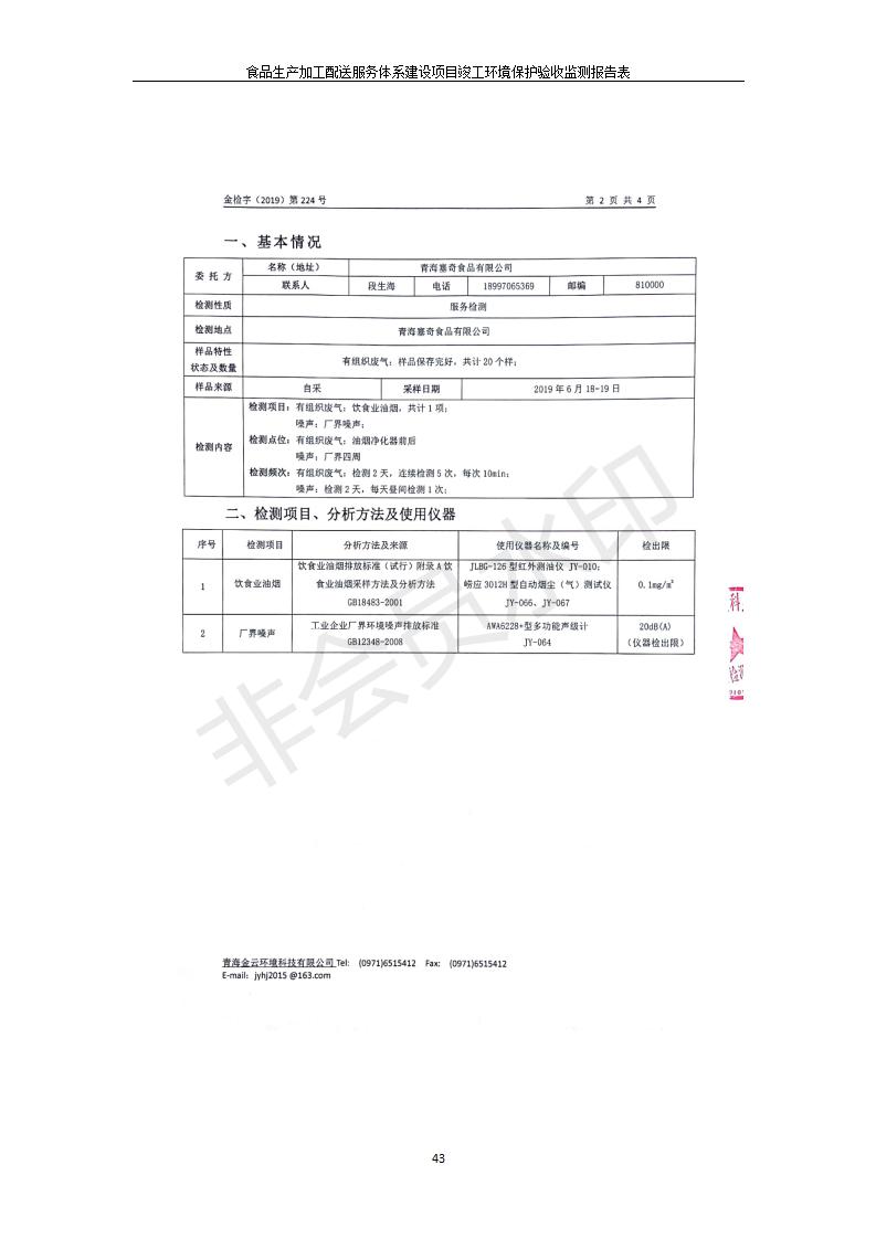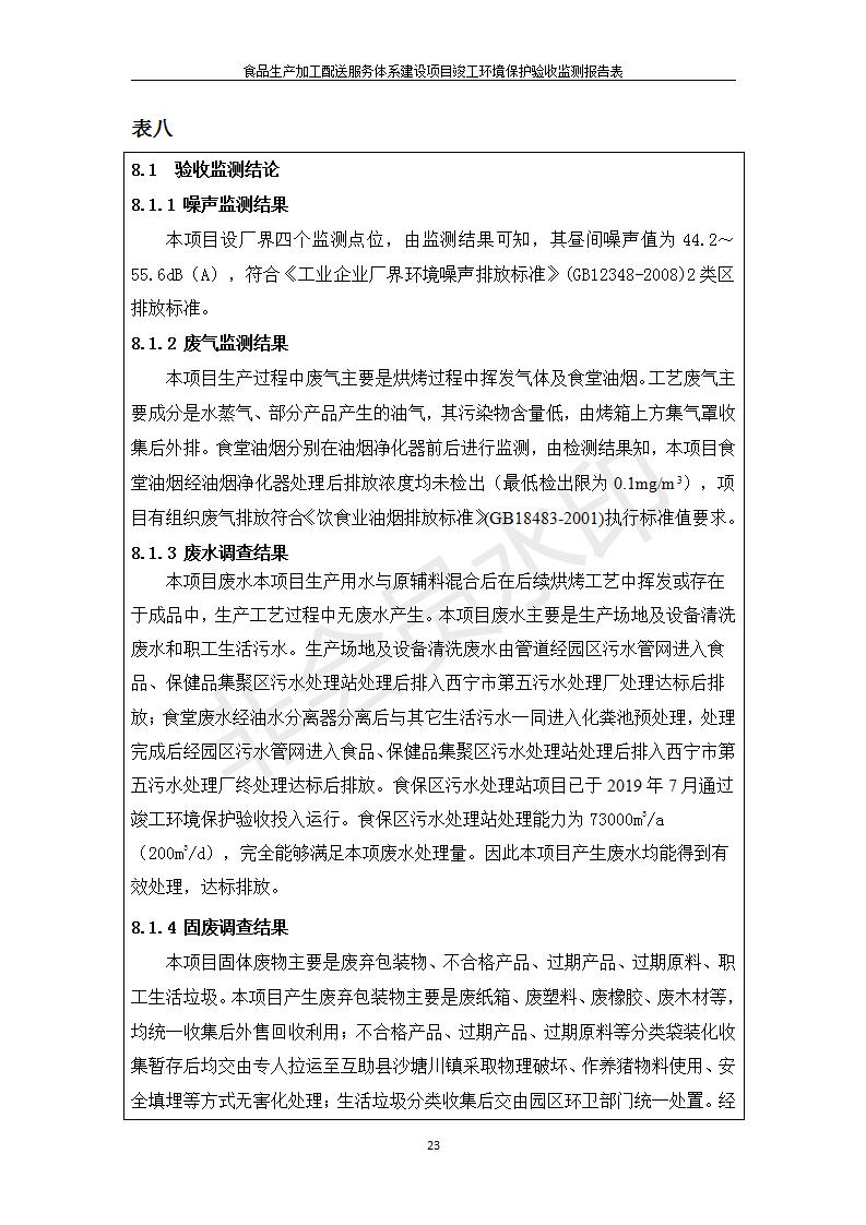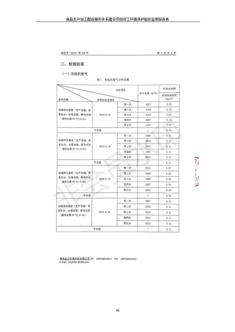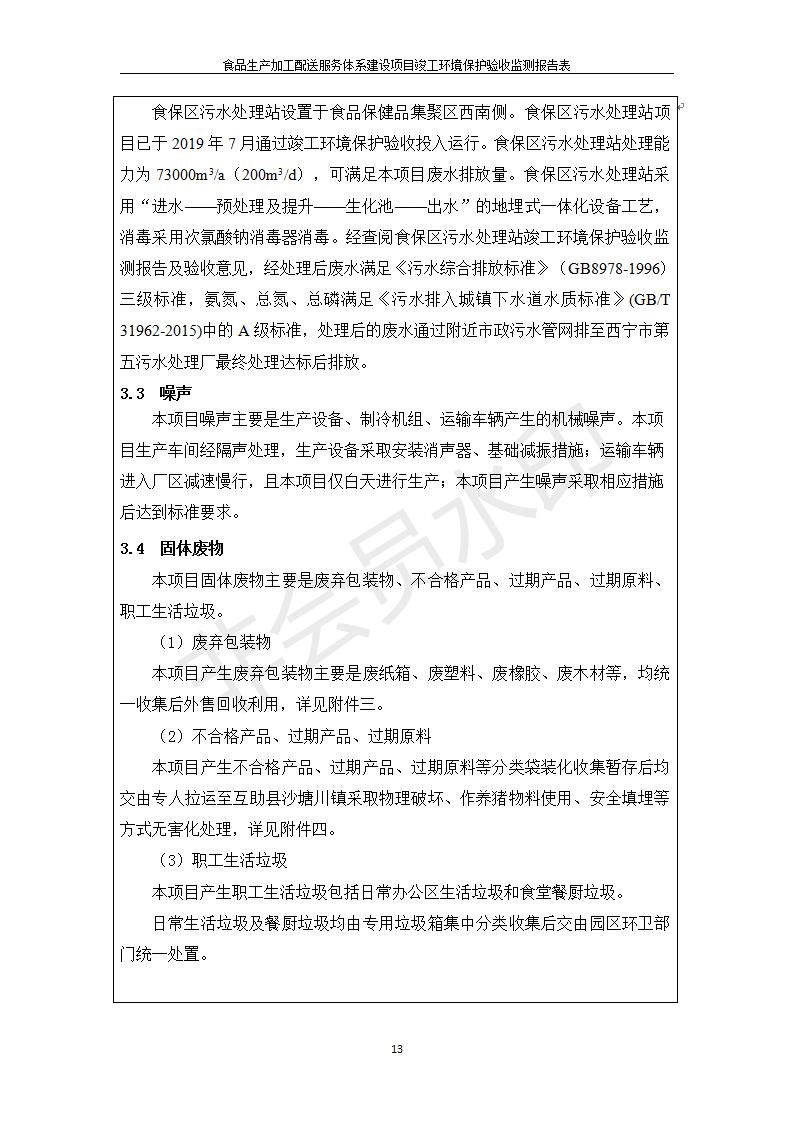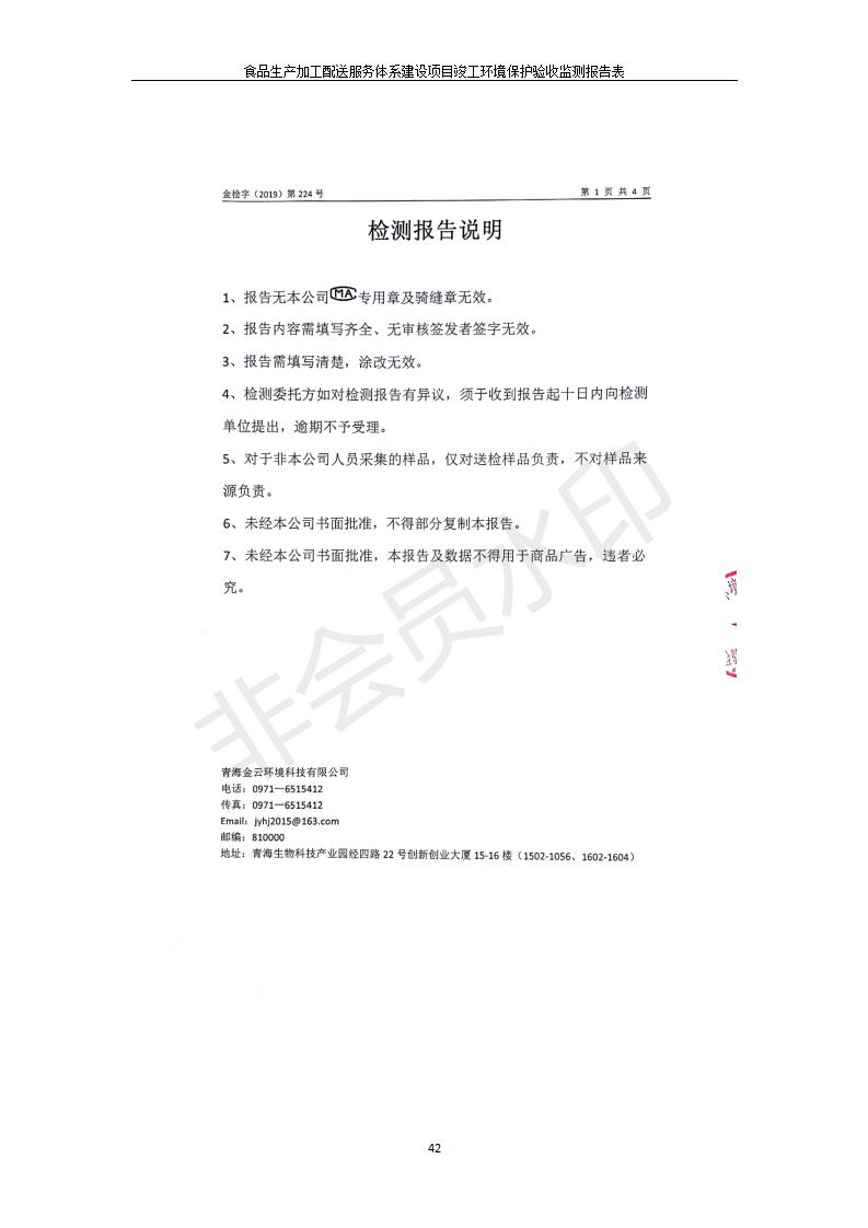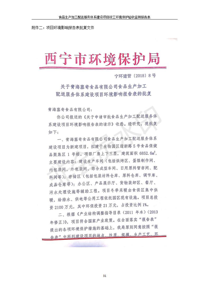 根據(jù)中華人民共和國(guó)國(guó)務(wù)院令第682號(hào)《國(guó)務(wù)院關(guān)于修改〈建設(shè)項(xiàng)目環(huán)境保護(hù)管理?xiàng)l例〉的決定》和《建設(shè)項(xiàng)目竣工環(huán)境保護(hù)驗(yàn)收暫行辦法》(國(guó)務(wù)院令682號(hào)),食品生產(chǎn)加工配送服務(wù)體系建設(shè)項(xiàng)目(包括竣工環(huán)境保護(hù)驗(yàn)收監(jiān)測(cè)報(bào)告表和驗(yàn)收意見)公示如下。 一、項(xiàng)目名稱:食品生產(chǎn)加工配送服務(wù)體系建設(shè)項(xiàng)目 二、地點(diǎn):西寧市城北區(qū)生物園區(qū)迎新路5號(hào)食品保健品集聚區(qū)1號(hào)樓 六、聯(lián)系電 話:0971-6515411 七、公示時(shí)間:二〇一九年九月二十日至二〇一九年十月二十二日 公示期間,對(duì)上述公示內(nèi)容如有異議,請(qǐng)以書面形式反饋,個(gè)人須署真實(shí)姓名,單位須加蓋公章。