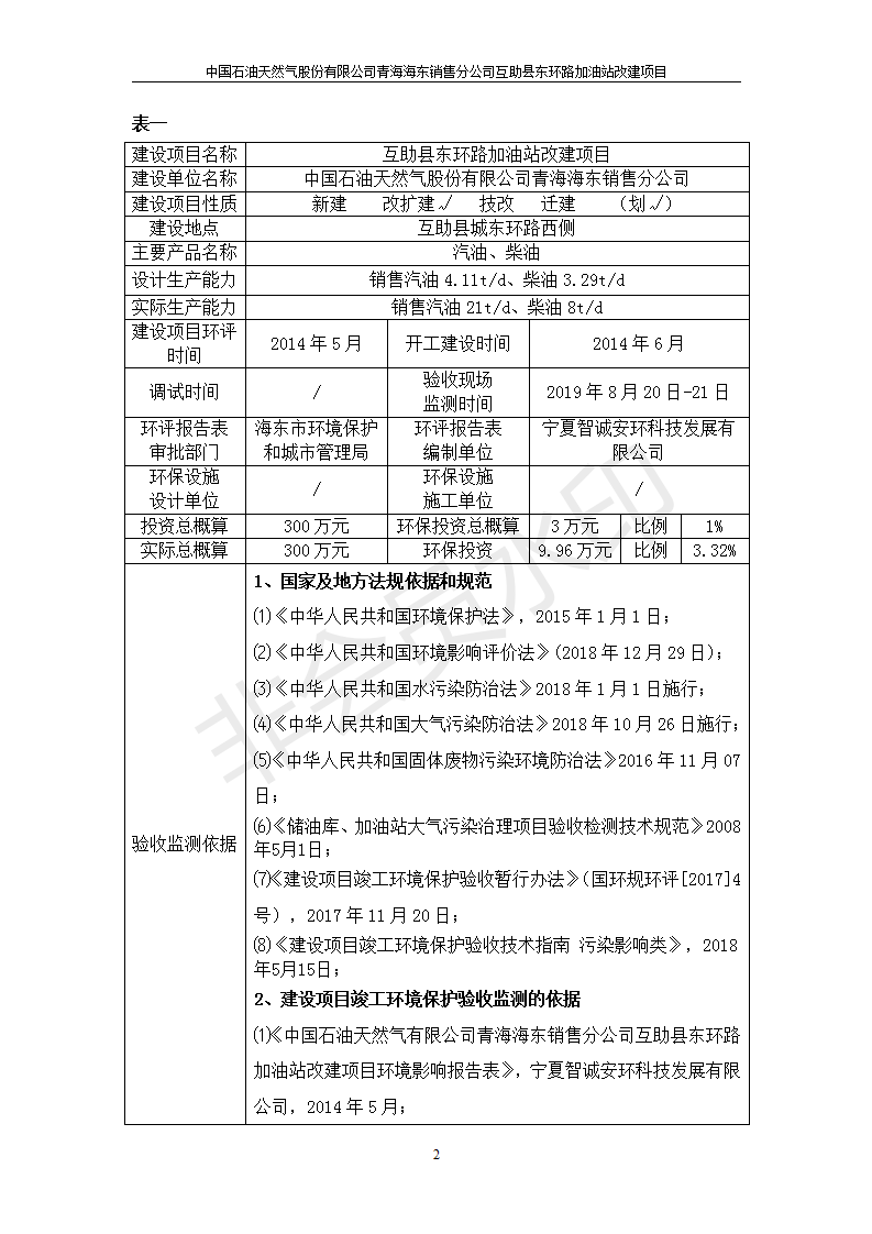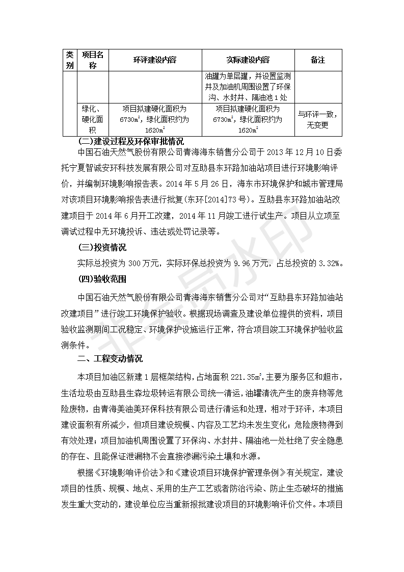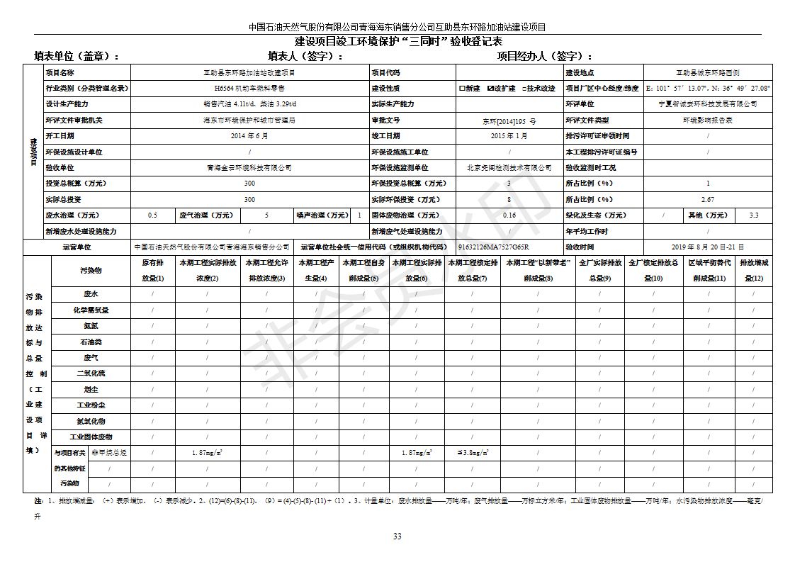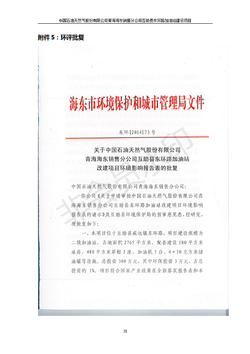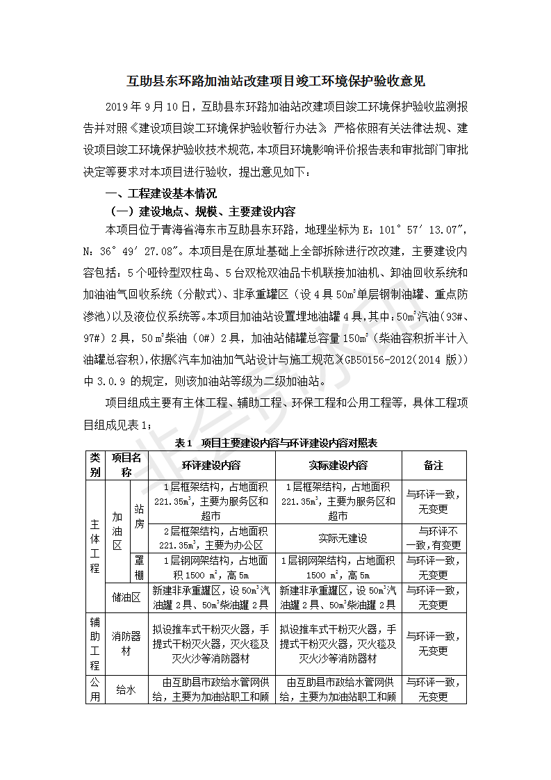 根據(jù)中華人民共和國(guó)國(guó)務(wù)院令第682號(hào)《國(guó)務(wù)院關(guān)于修改〈建設(shè)項(xiàng)目環(huán)境保護(hù)管理?xiàng)l例〉的決定》和《建設(shè)項(xiàng)目竣工環(huán)境保護(hù)驗(yàn)收暫行辦法》(國(guó)務(wù)院令682號(hào)),互助縣東環(huán)路加油站改建項(xiàng)目(包括竣工環(huán)境保護(hù)驗(yàn)收監(jiān)測(cè)報(bào)告表和驗(yàn)收意見(jiàn))公示如下。 一、項(xiàng)目名稱(chēng):互助縣東環(huán)路加油站改建項(xiàng)目 二、地點(diǎn):青海省海東市互助縣東環(huán)路 六、聯(lián)系電話(huà):0971-6515411 七、公示時(shí)間:二〇一九年九月二十七日至二〇一九年十月二十九日 公示期間,對(duì)上述公示內(nèi)容如有異議,請(qǐng)以書(shū)面形式反饋,個(gè)人須署真實(shí)姓名,單位須加蓋公章。