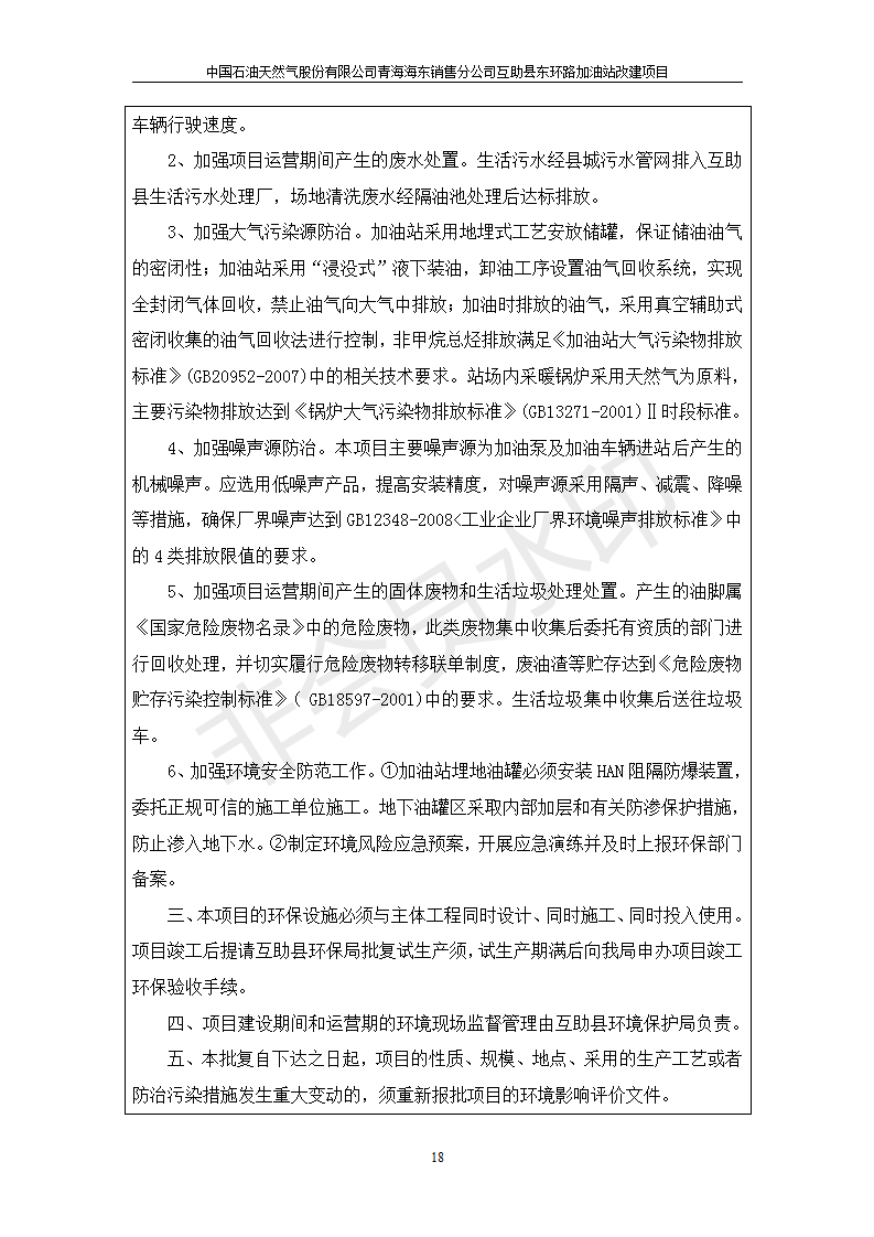 | 上一篇:互助縣東和加油站原址擴(kuò)建項(xiàng)目 竣工環(huán)境保護(hù)驗(yàn)收監(jiān)測(cè)報(bào)告表公示 | 下一篇:互助縣沙塘川加油站建設(shè)項(xiàng)目竣工環(huán)境保護(hù)驗(yàn)收監(jiān)測(cè)報(bào)告表 |
