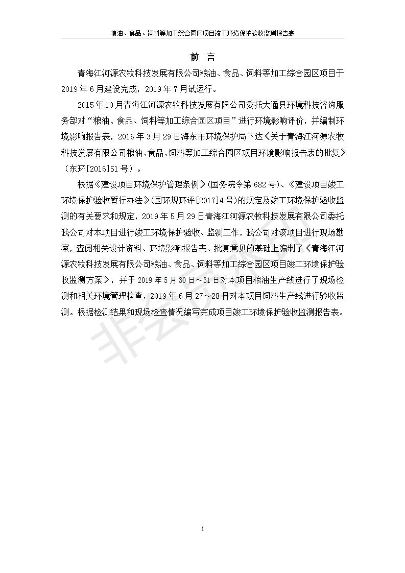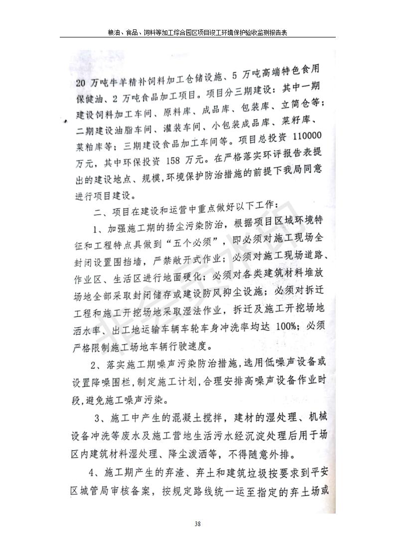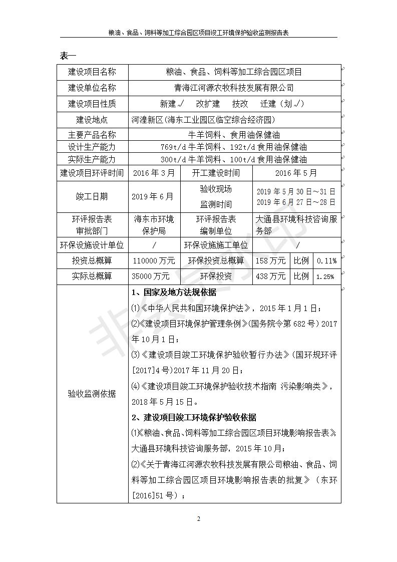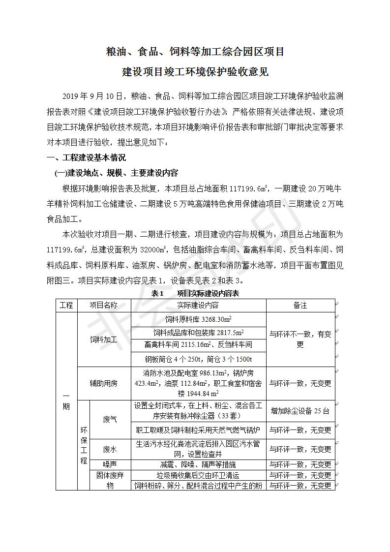 根據中華人民共和國國務院令第682號《國務院關于修改〈建設項目環(huán)境保護管理條例〉的決定》和《建設項目竣工環(huán)境保護驗收暫行辦法》(國務院令682號),糧油、食品、飼料等加工綜合園區(qū)項目竣工環(huán)境保護驗收監(jiān)測報告表(包括竣工環(huán)境保護驗收監(jiān)測報告表和驗收意見)公示如下。