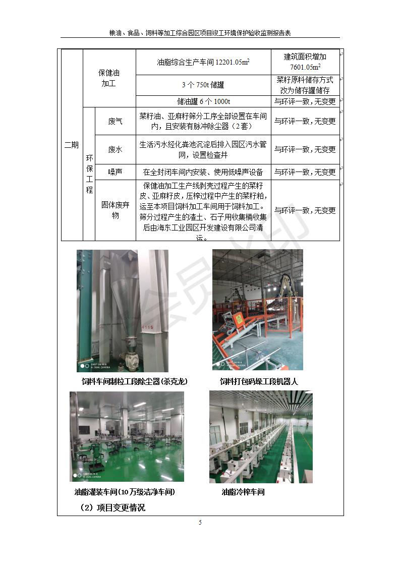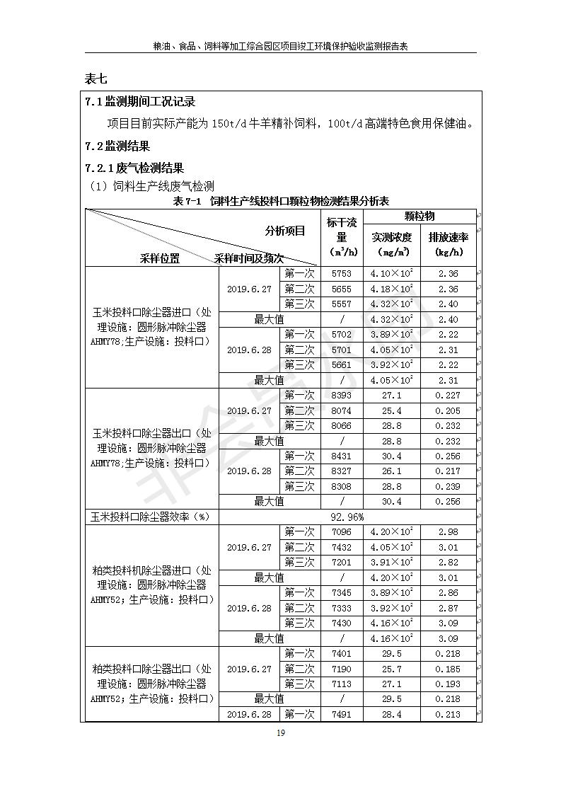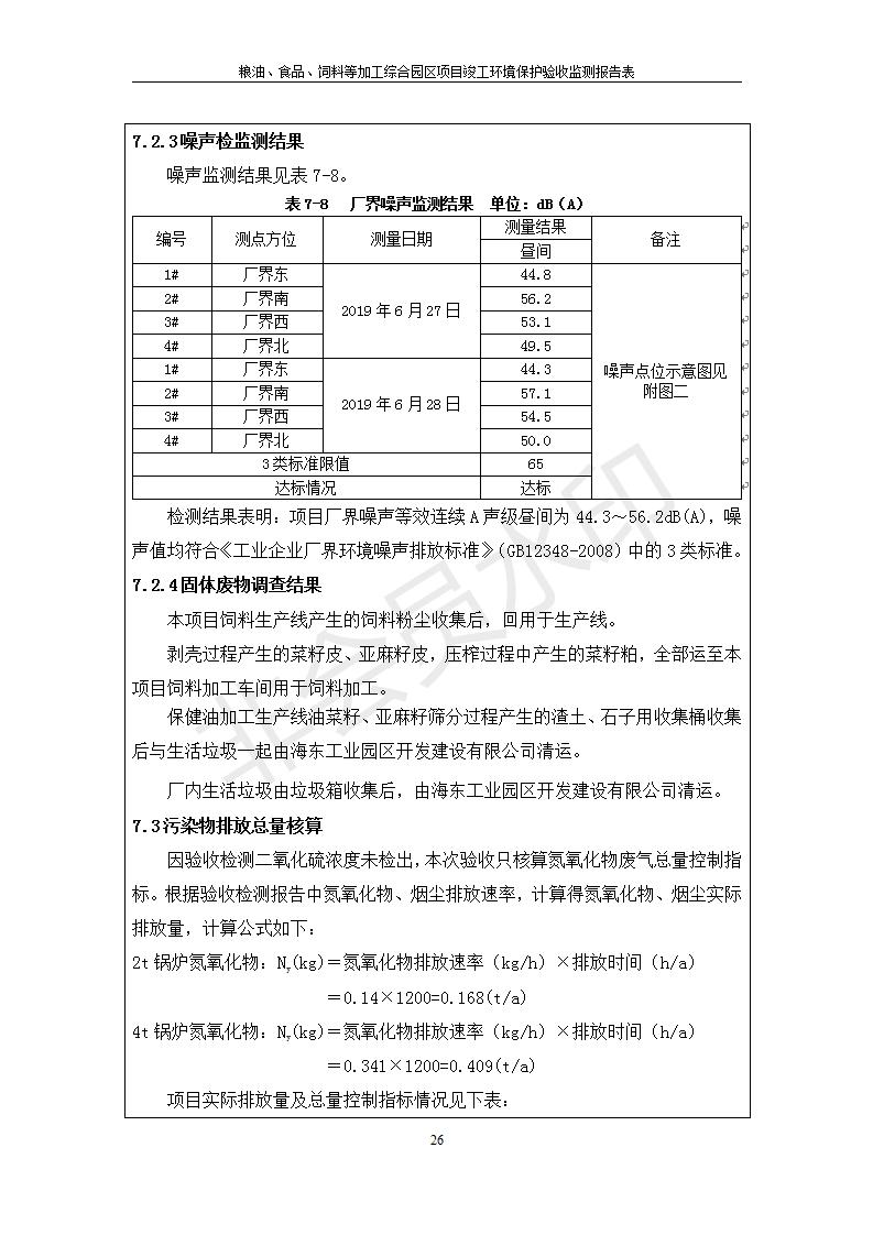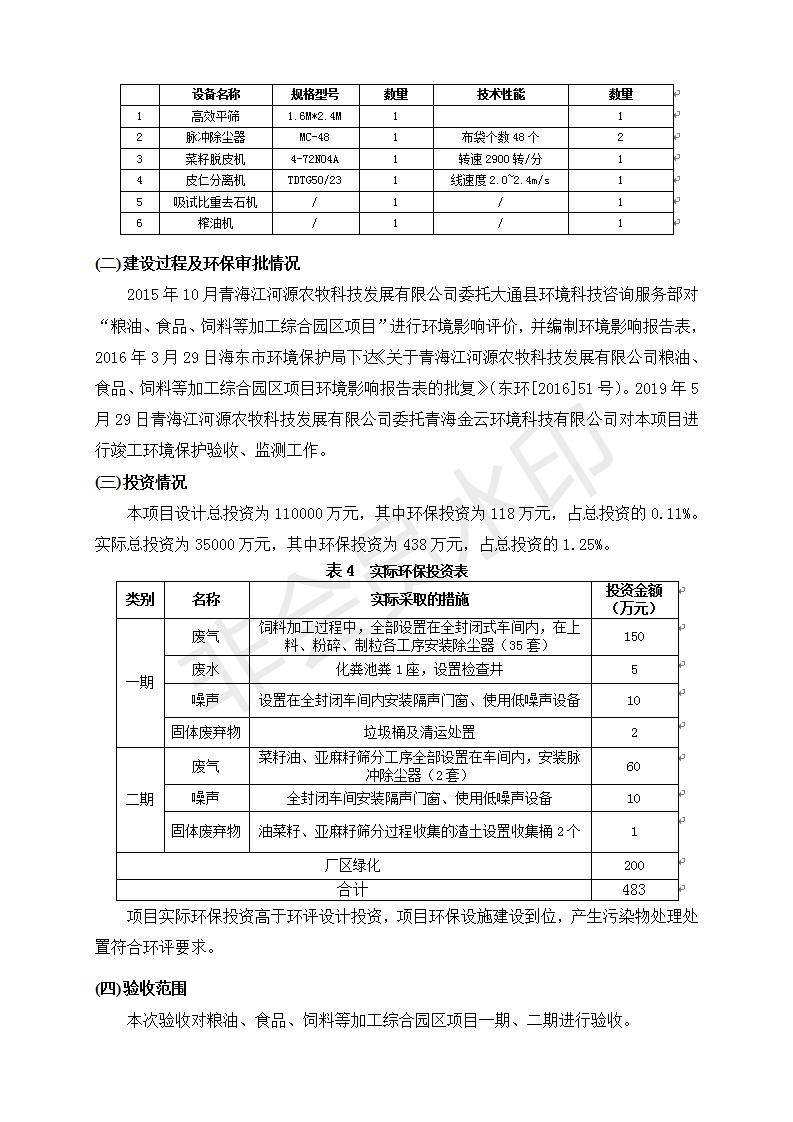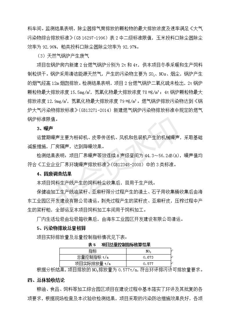 糧油、食品、飼料等加工綜合園區(qū)項目竣工環(huán)境保護驗收監(jiān)測報告表公示