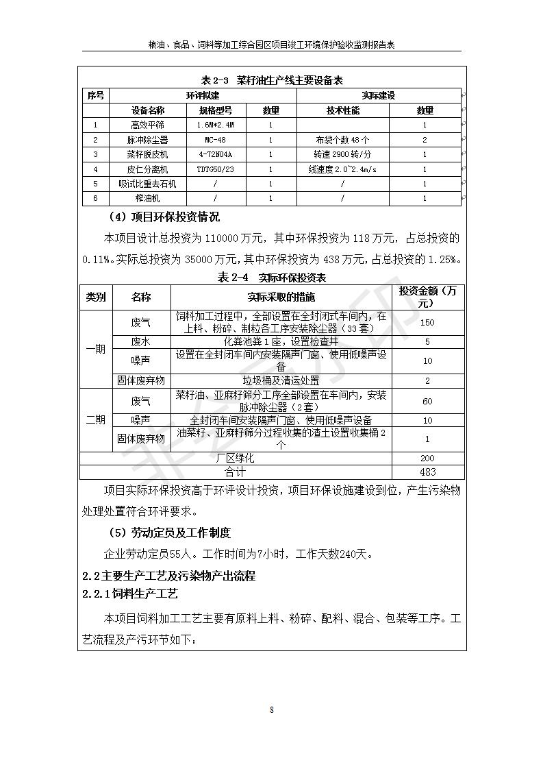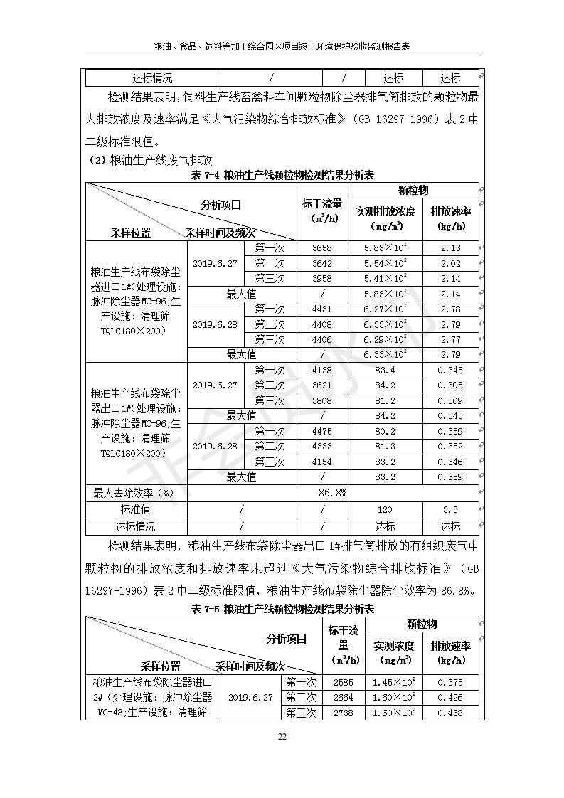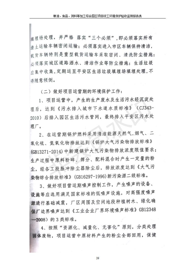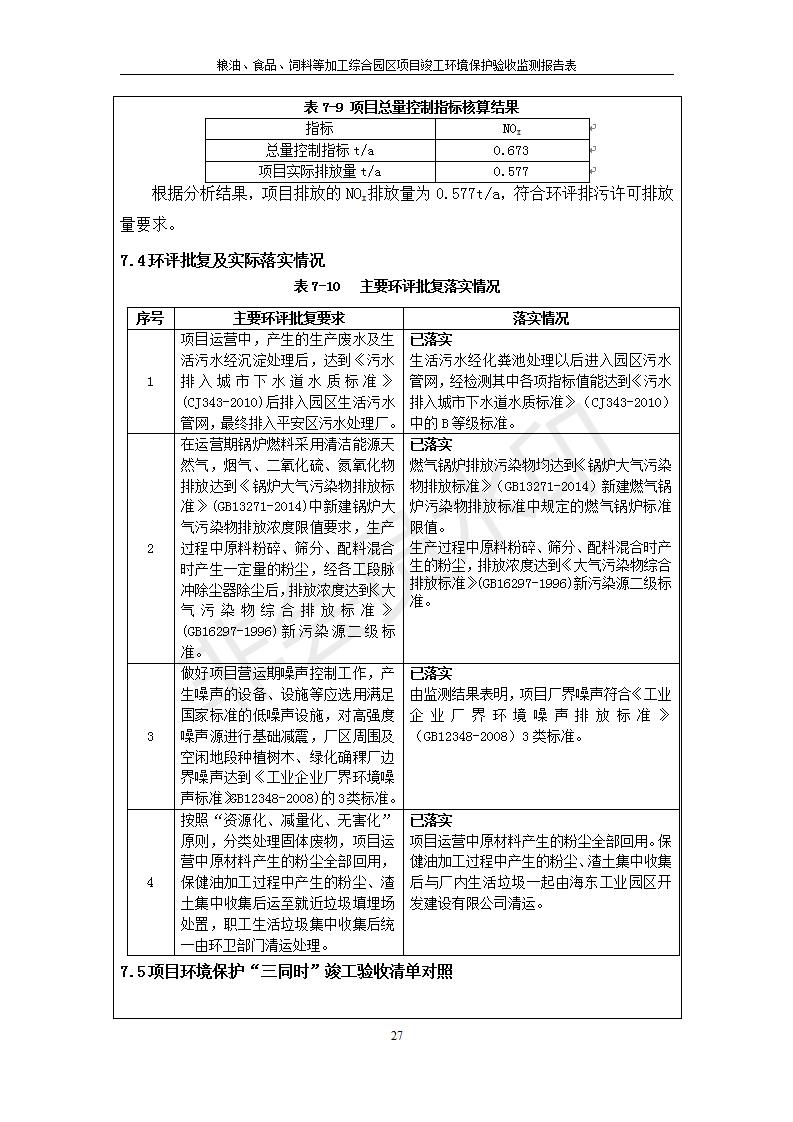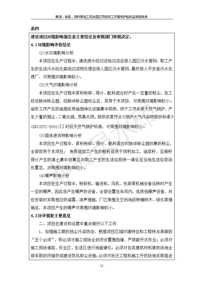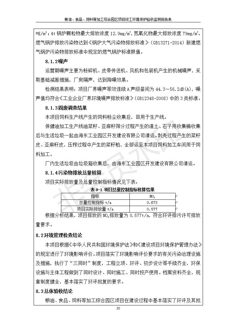 糧油、食品、飼料等加工綜合園區(qū)項目竣工環(huán)境保護驗收監(jiān)測報告表公示