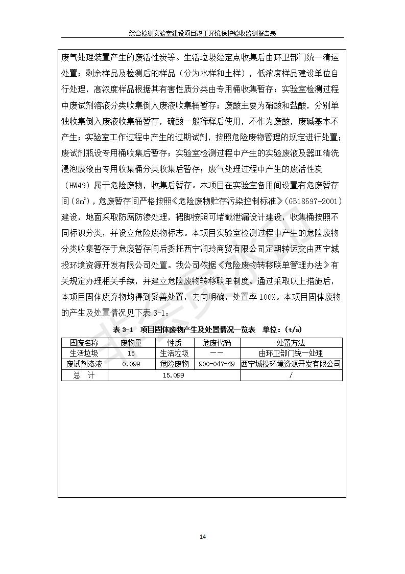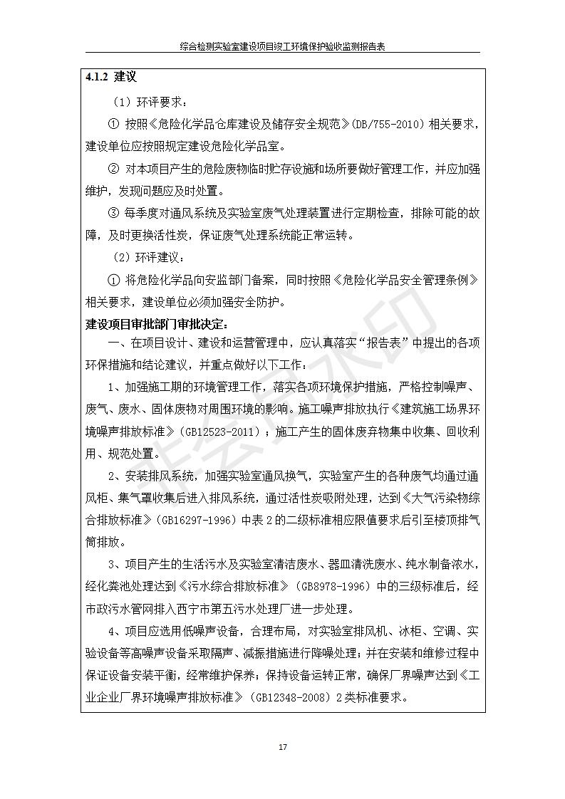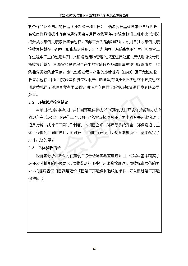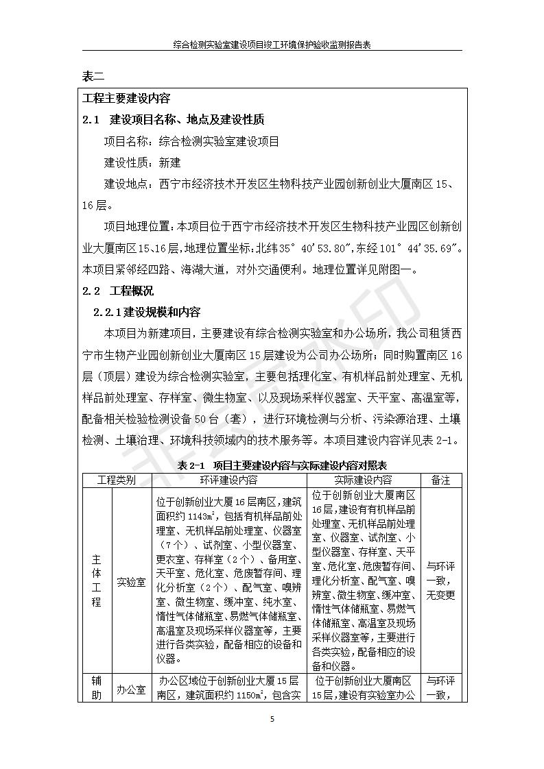 根據(jù)中華人民共和國國務院令第682號《國務院關于修改〈建設項目環(huán)境保護管理條例〉的決定》和《建設項目竣工環(huán)境保護驗收暫行辦法》(國務院令682號),綜合檢測實驗室建設項目(包括竣工環(huán)境保護驗收監(jiān)測報告表和驗收意見)公示如下。 一、項目名稱:綜合檢測實驗室建設項目 二、地點:西寧市經(jīng)濟技術開發(fā)區(qū)生物科技產(chǎn)業(yè)園區(qū)創(chuàng)新創(chuàng)業(yè)大廈南區(qū)15、16層 六、聯(lián)系電話:0971-6515411 七、公示時間:二〇一九年十一月十九日至二〇一九年十二月十六日 公示期間,對上述公示內(nèi)容如有異議,請以書面形式反饋,個人須署真實姓名,單位須加蓋公章。