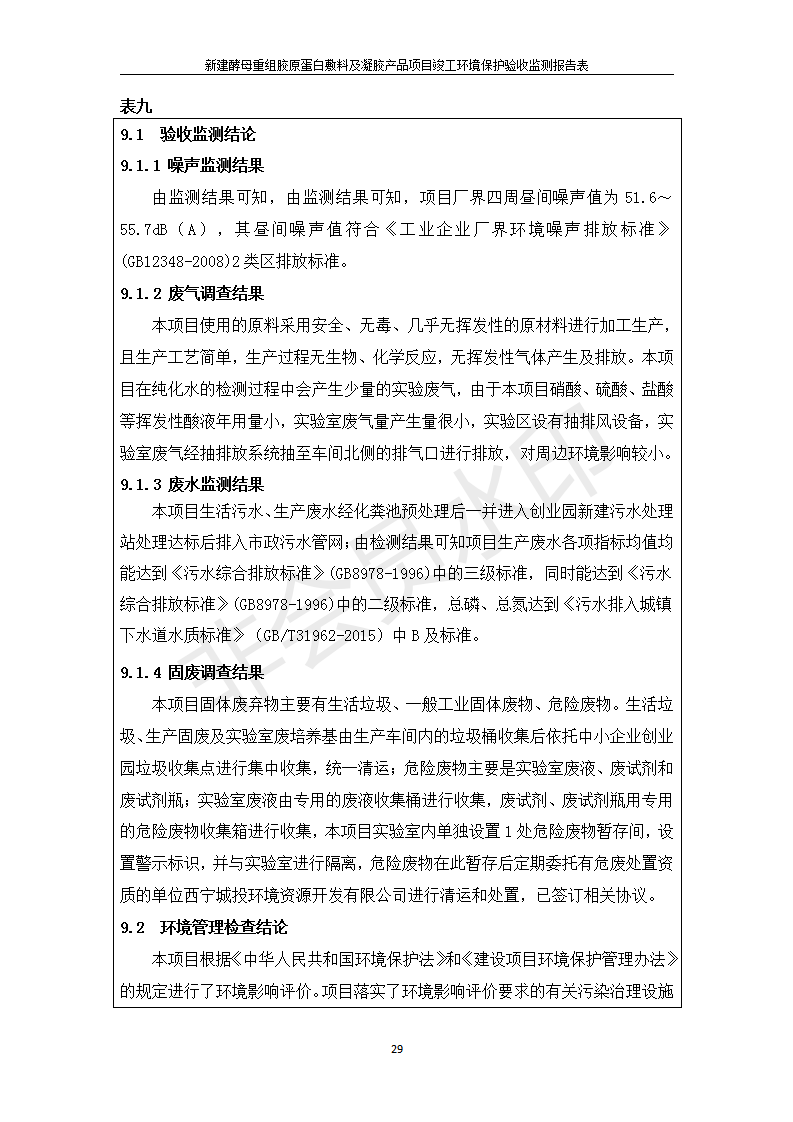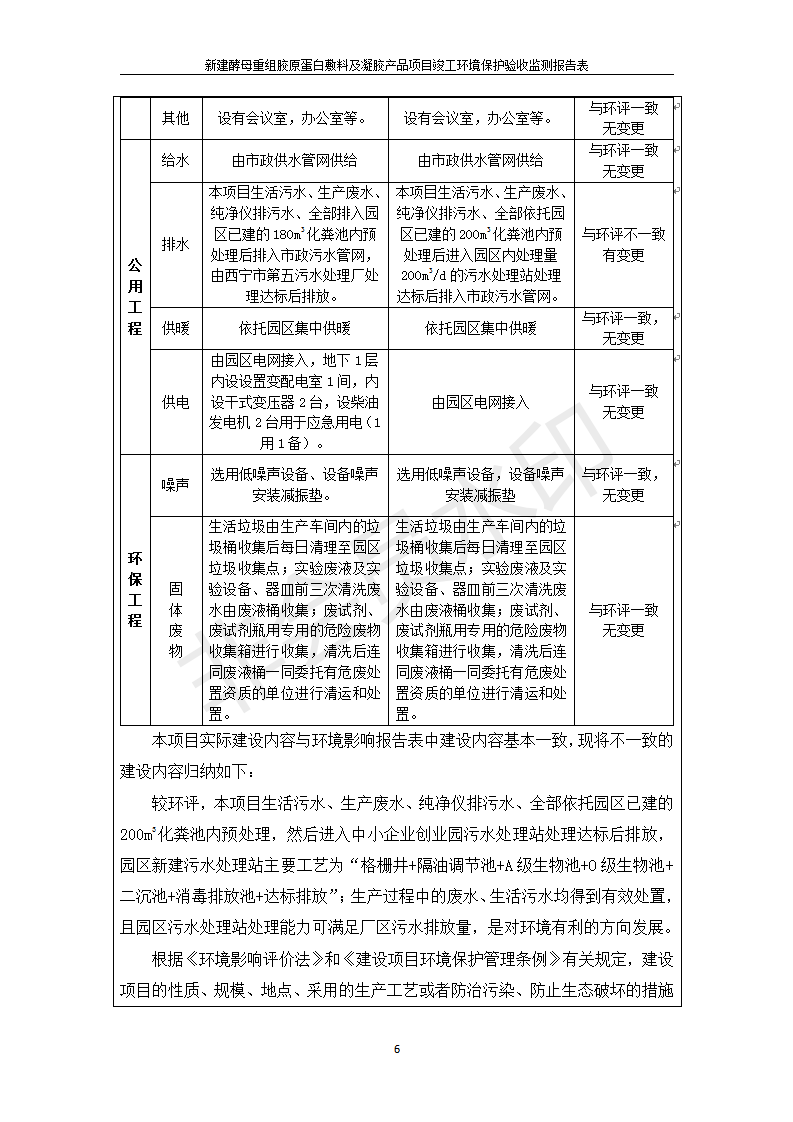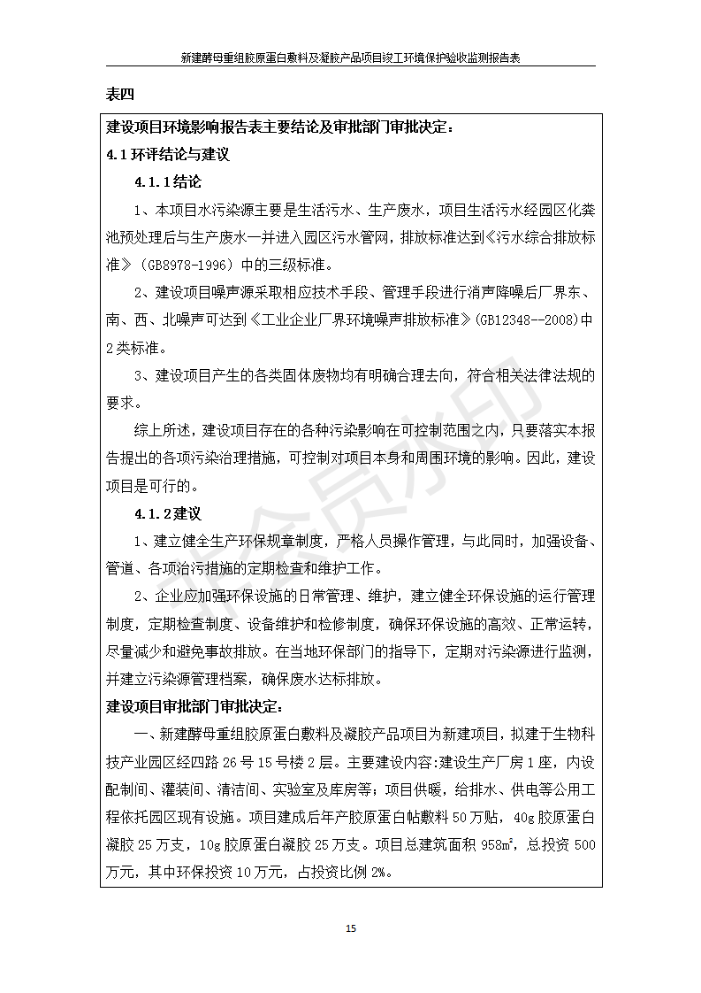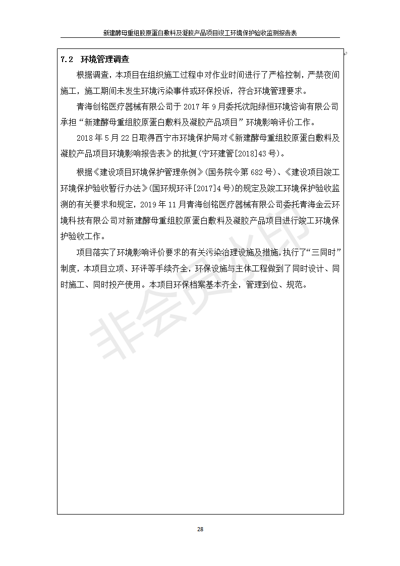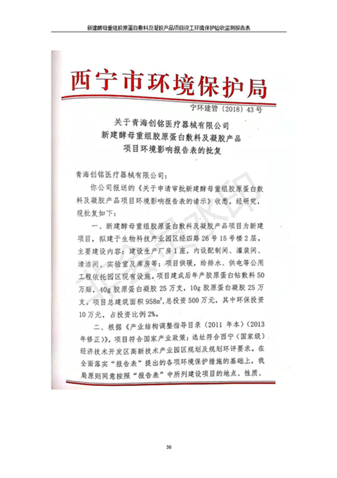 根據(jù)中華人民共和國國務院令第682號《國務院關(guān)于修改〈建設項目環(huán)境保護管理條例〉的決定》和《建設項目竣工環(huán)境保護驗收暫行辦法》(國務院令682號),新建酵母重組膠原蛋白敷料及凝膠產(chǎn)品項目(包括竣工環(huán)境保護驗收監(jiān)測報告表和驗收意見)公示如下。