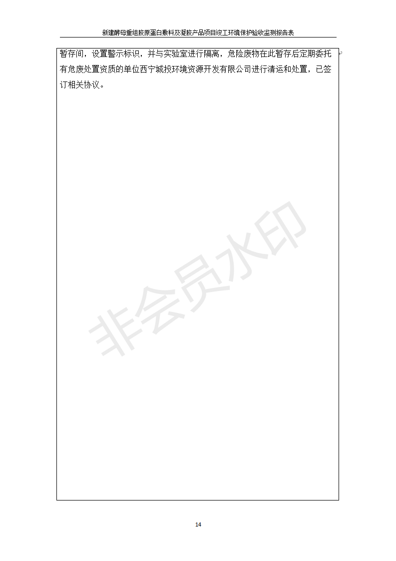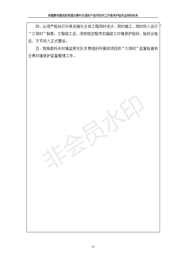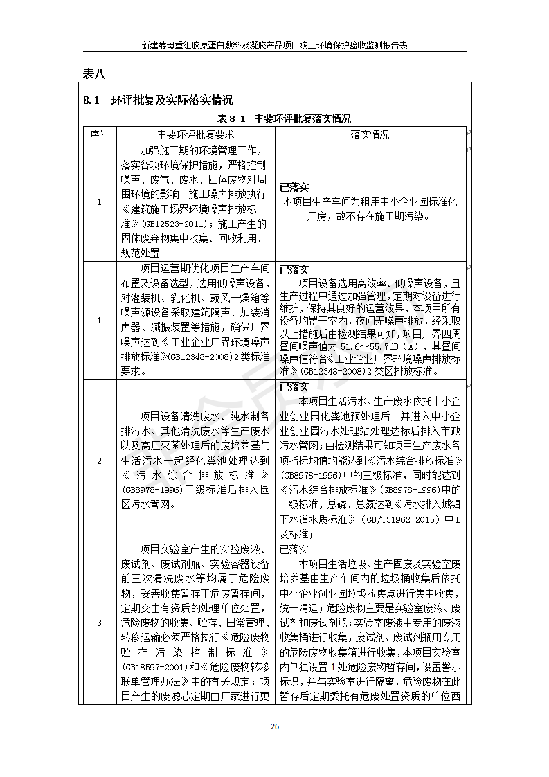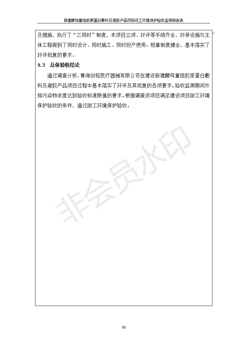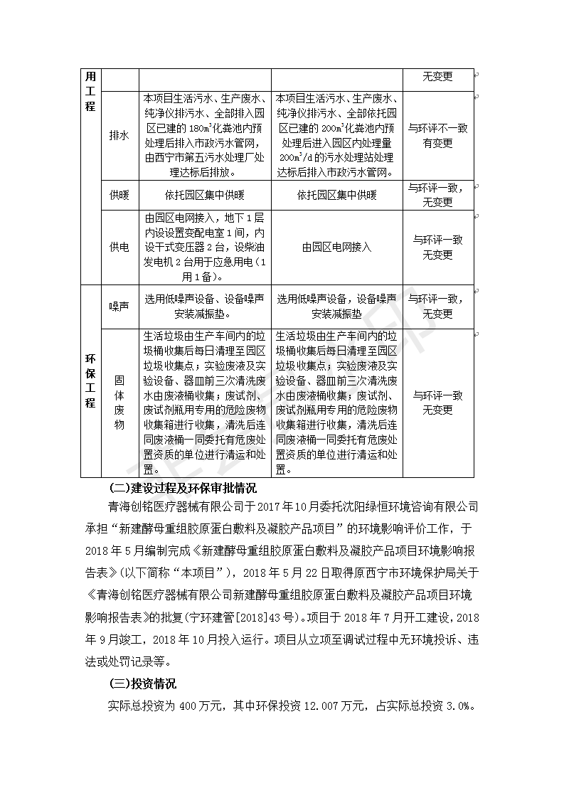 根據(jù)中華人民共和國國務院令第682號《國務院關(guān)于修改〈建設項目環(huán)境保護管理條例〉的決定》和《建設項目竣工環(huán)境保護驗收暫行辦法》(國務院令682號),新建酵母重組膠原蛋白敷料及凝膠產(chǎn)品項目(包括竣工環(huán)境保護驗收監(jiān)測報告表和驗收意見)公示如下。