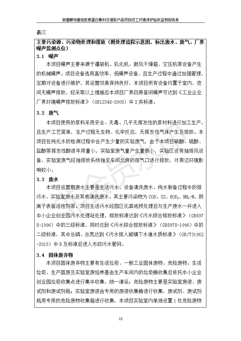 新建酵母重組膠原蛋白敷料及凝膠產(chǎn)品項目竣工環(huán)境保護驗收監(jiān)測報告表公示