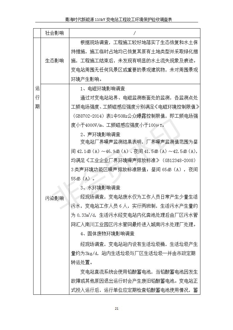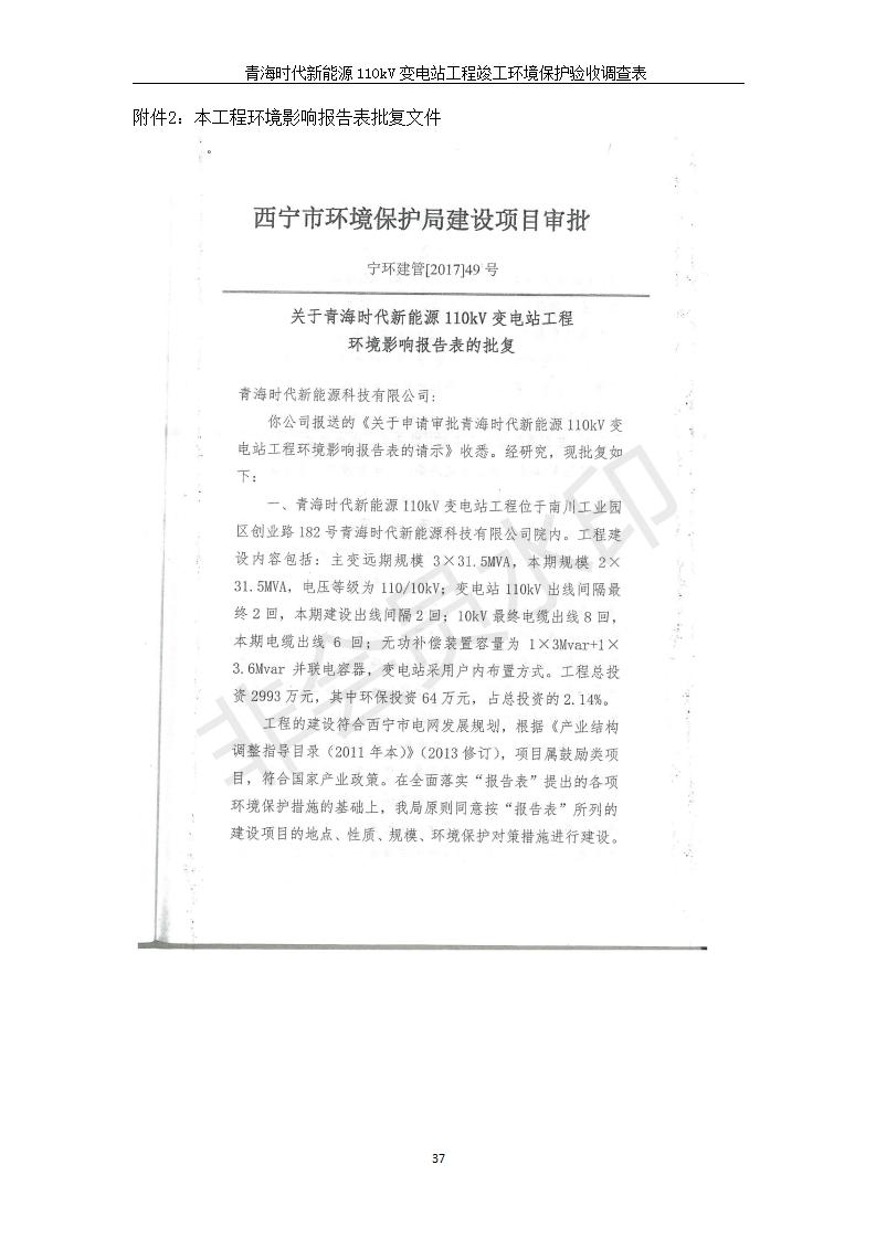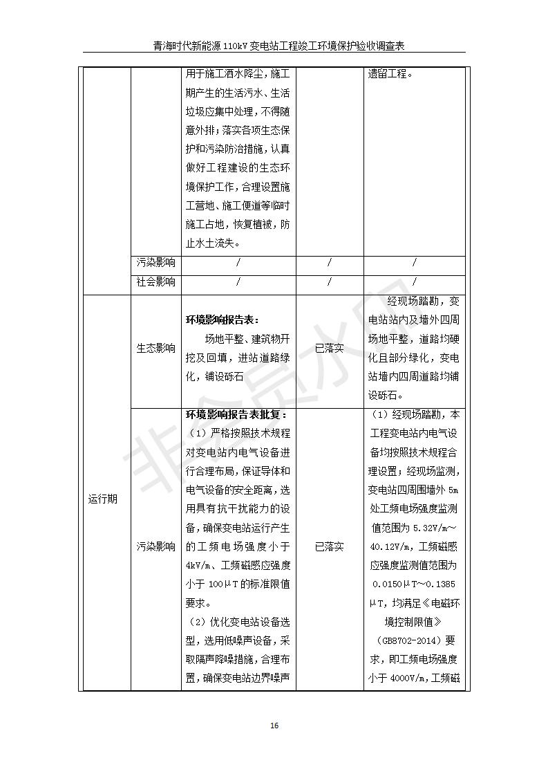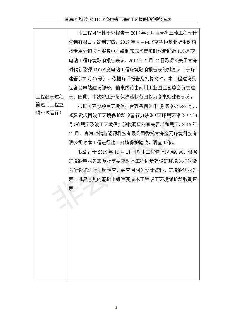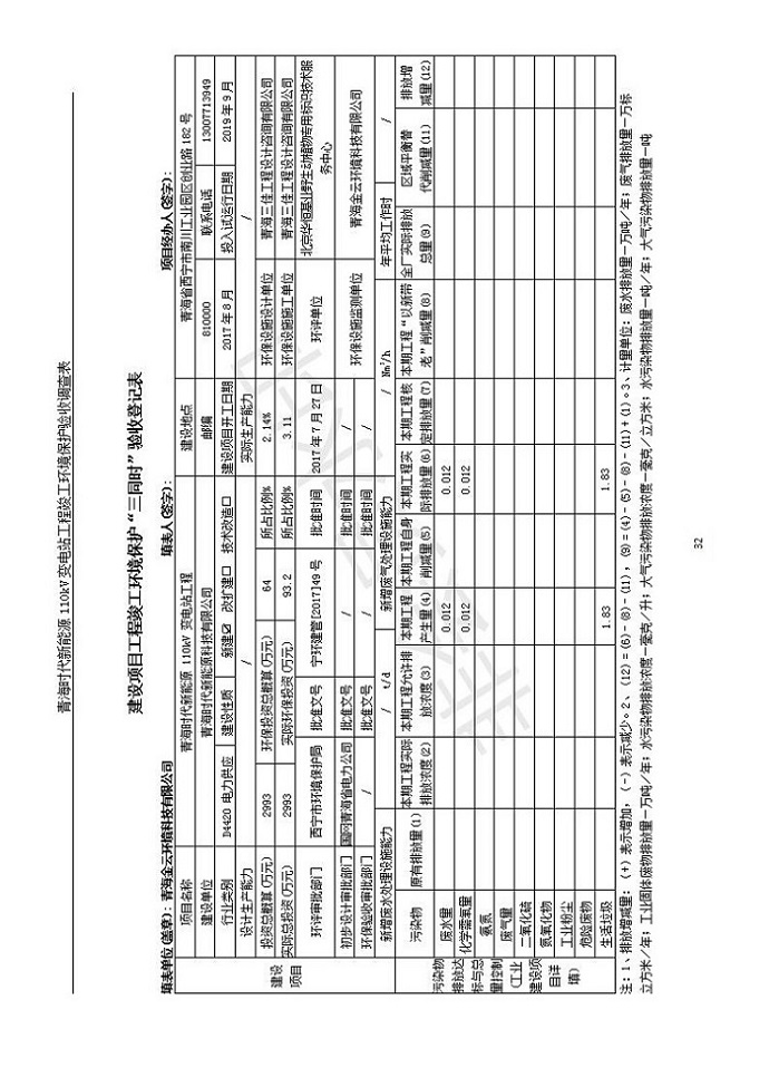 青海時(shí)代新能源110kV變電站工程竣工環(huán)境保護(hù)驗(yàn)收調(diào)查表公示發(fā)布日期:(2020-1-14) 點(diǎn)擊次數(shù):2805 |