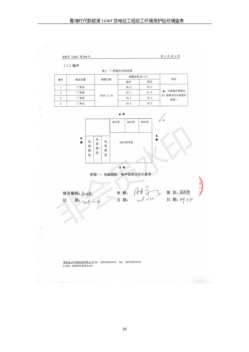根據(jù)中華人民共和國國務(wù)院令第682號(hào)《國務(wù)院關(guān)于修改〈建設(shè)項(xiàng)目環(huán)境保護(hù)管理?xiàng)l例〉的決定》和《建設(shè)項(xiàng)目竣工環(huán)境保護(hù)驗(yàn)收暫行辦法》(國務(wù)院令682號(hào)),青海時(shí)代新能源110kV變電站工程(包括竣工環(huán)境保護(hù)驗(yàn)收調(diào)查表和驗(yàn)收意見)公示如下。 一、項(xiàng)目名稱:青海時(shí)代新能源110kV變電站工程 二、地點(diǎn):青海省西寧市南川工業(yè)園區(qū)創(chuàng)業(yè)路182號(hào)青海時(shí)代新能源科技有限公司廠區(qū)內(nèi) 三、建設(shè)單位:青海時(shí)代新能源科技有限公司 四、建設(shè)內(nèi)容:青海時(shí)代新能源 110kV 變電站采用全戶內(nèi)布置方式,依據(jù)環(huán)評(píng)報(bào)告及批復(fù)文件,經(jīng)現(xiàn)場踏勘本工程建設(shè)只包含變電站建設(shè)部分,輸電線路由南川工業(yè)園區(qū)管委會(huì)負(fù)責(zé)建設(shè),輸電線路不屬于本次驗(yàn)收調(diào)查范圍。工程本期規(guī)模2×31.5MVA,電壓等級(jí)為110/10kV。變電站 110kV 出線間隔最終2回,本期建設(shè)出線間隔2回;10kV最終電纜出線8回,本期電纜出線6回。 五、聯(lián)系人:張工 六、聯(lián)系電話:0971-6515411 七、公示時(shí)間:二〇二〇年一月十四日至二〇二〇年二月十三日 公示期間,對上述公示內(nèi)容如有異議,請以書面形式反饋,個(gè)人須署真實(shí)姓名,單位須加蓋公章。