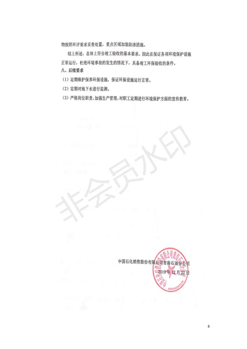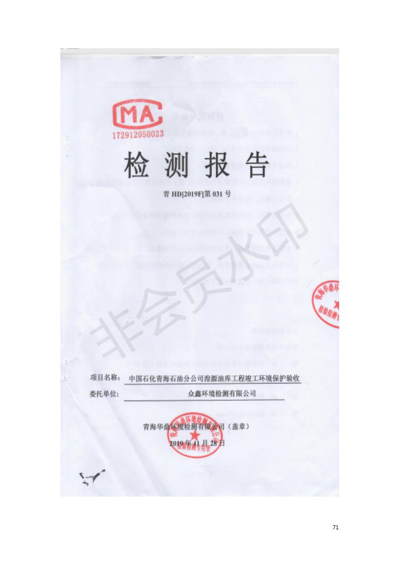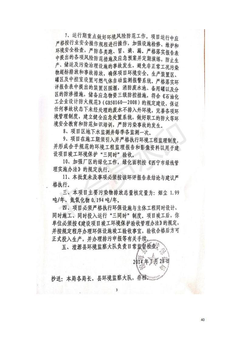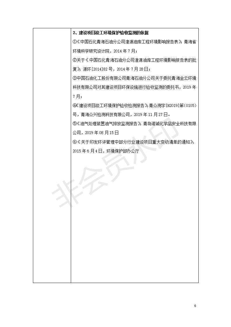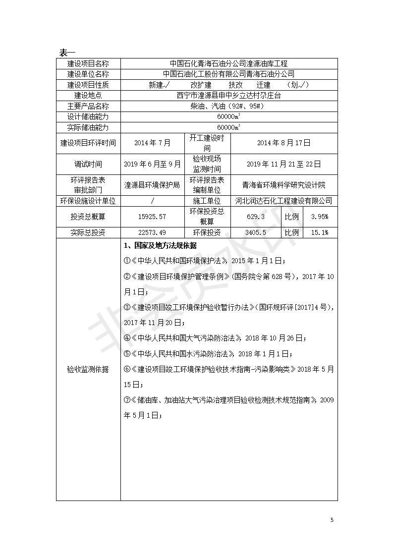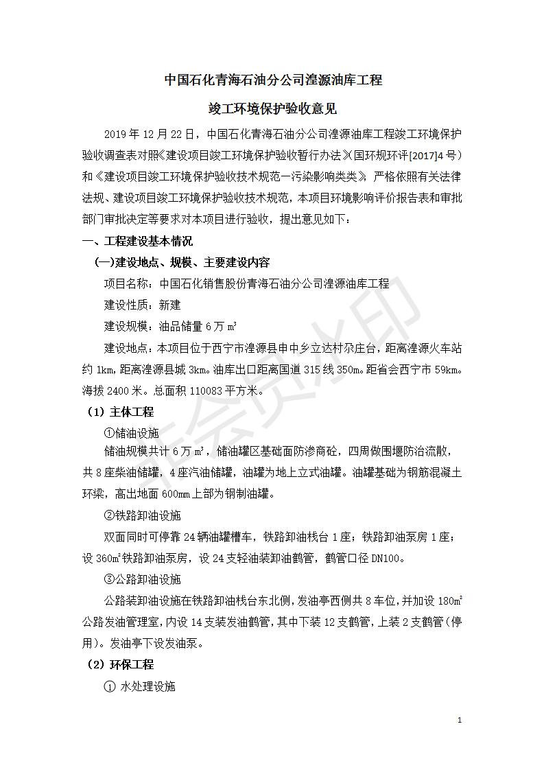 據(jù)中華人民共和國國務(wù)院令第682號《國務(wù)院關(guān)于修改〈建設(shè)項目環(huán)境保護(hù)管理條例〉的決定》和《建設(shè)項目竣工環(huán)境保護(hù)驗收暫行辦法》(國務(wù)院令682號),中國石化青海石油分公司湟源油庫工程建設(shè)項目(包括竣工環(huán)境保護(hù)驗收監(jiān)測報告表和驗收意見)公示如下。 一、項目名稱:中國石化青海石油分公司湟源油庫工程建設(shè)項目 二、地點:西寧市湟源縣申中鄉(xiāng)立達(dá)村尕莊臺 三、建設(shè)單位:中國石化銷售股份有限公司青海石油分公司 四、建設(shè)內(nèi)容:油品儲量6萬m3、其他配套設(shè)施。五、聯(lián)系人:董恒棟 六、聯(lián)系電話:18697130811 七、公示時間:二〇二〇年三月十三日至二〇二〇年四月十日 公示期間,對上述公示內(nèi)容如有異議,請以書面形式反饋,個人須署真實姓名,單位須加蓋公章。