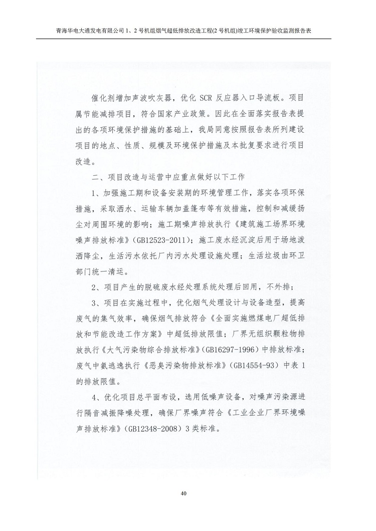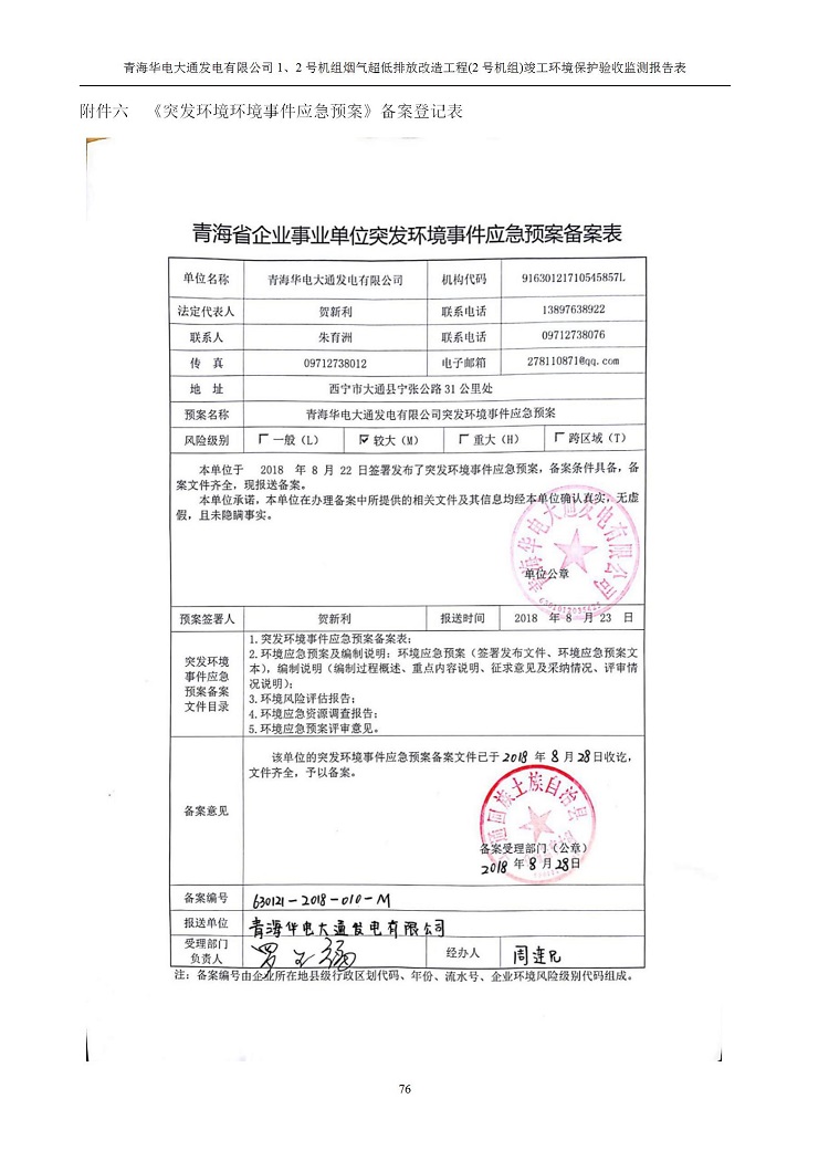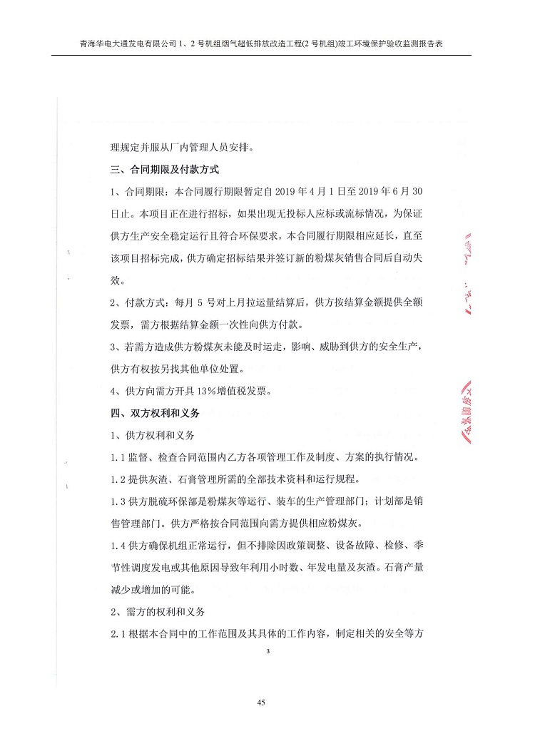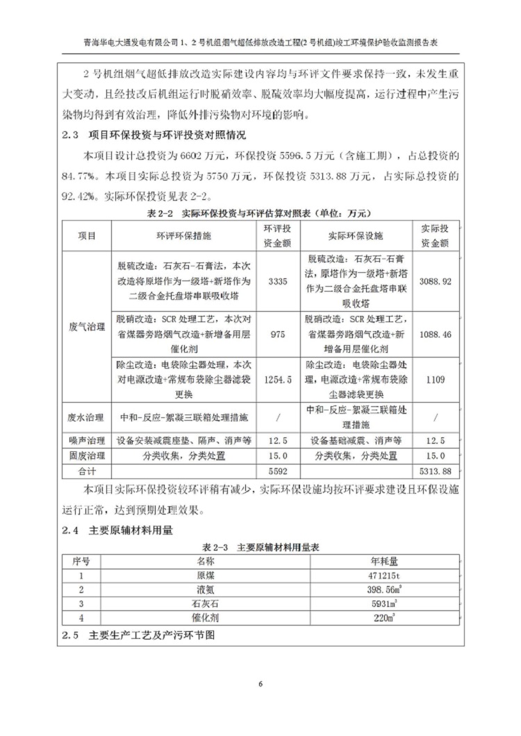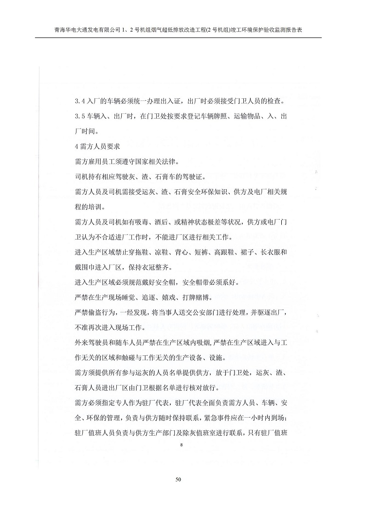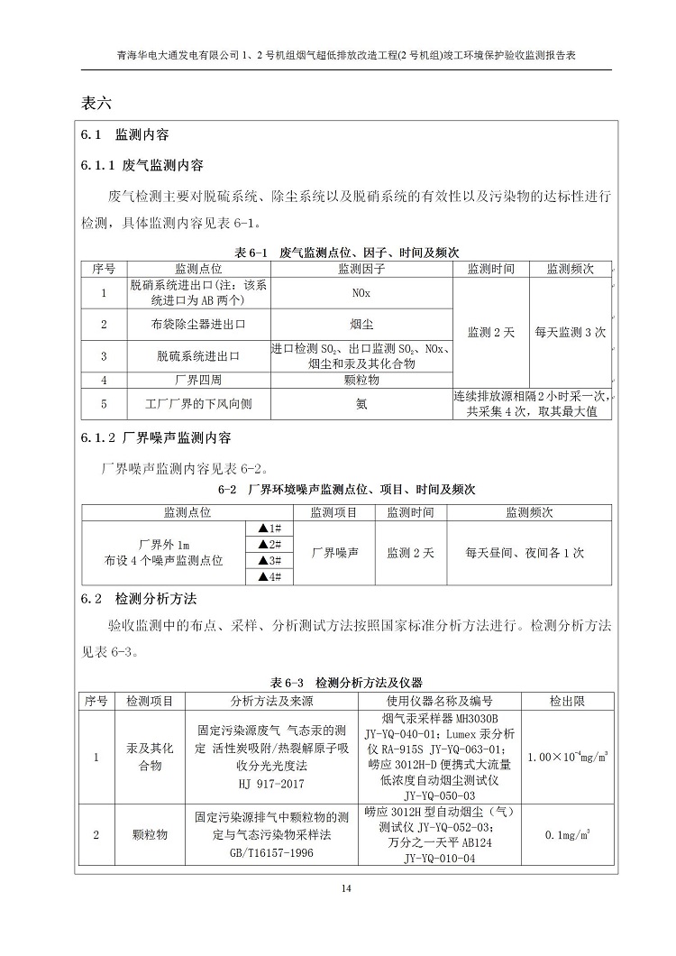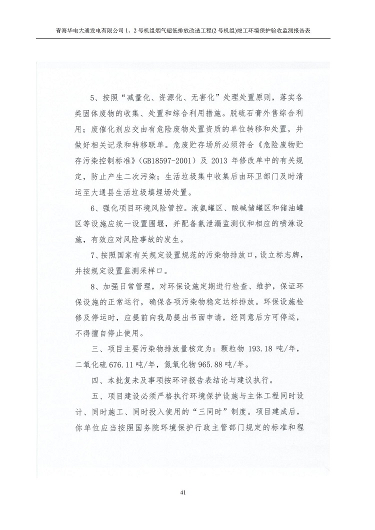 根據(jù)中華人民共和國國務院令第682號《國務院關于修改〈建設項目環(huán)境保護管理條例〉的決定》和《建設項目竣工環(huán)境保護驗收暫行辦法》(國務院令682號),青海華電大通發(fā)電有限公司1、2號機組煙氣超低排放改造工程(2號機組) (包括竣工環(huán)境保護驗收監(jiān)測報告表和驗收意見)公示如下。 一、項目名稱:青海華電大通發(fā)電有限公司1、2號機組煙氣超低排放改造工程(2號機組) 竣工環(huán)境保護驗收監(jiān)測報告表 二、地點:青海省西寧市大通縣寧張公路31公里處 三、建設單位:青海華電大通發(fā)電有限公司 四、建設內容:2號機組煙氣超低排放改造,2號機組改造內容為脫硫系統(tǒng)保留原脫硫裝置作為一級塔,新建二級合金托盤塔串聯(lián)吸收塔;對原“1+2”電袋復合除塵器的一電場電源進行改造,對布袋除塵器濾袋進行更換;對原脫硝系統(tǒng)選擇性催化還原法(SCR)脫硝工藝加裝備用催化劑,每層催化劑增加聲波吹灰器,優(yōu)化SCR反應器入口導流板。 五、聯(lián)系人:馬世敏 六、聯(lián)系電 話:0971-6515411 七、公示時間:二〇二〇年四月二十九日至二〇二〇年五月二十八日 公示期間,對上述公示內容如有異議,請以書面形式反饋,個人須署真實姓名,單位須加蓋公章。