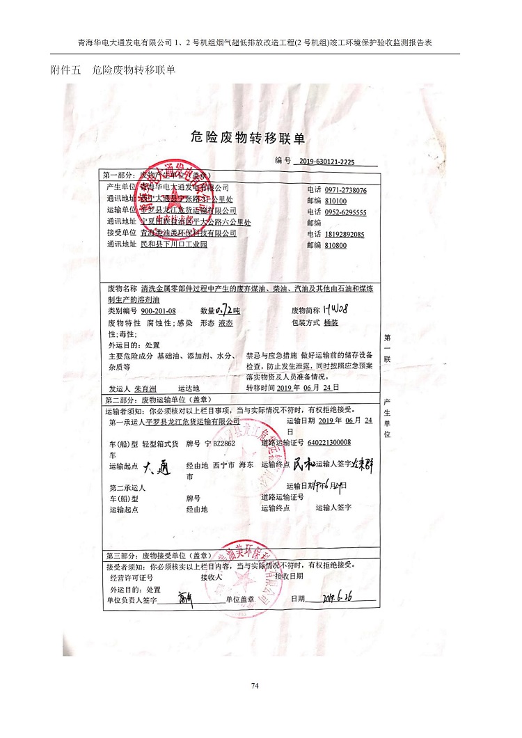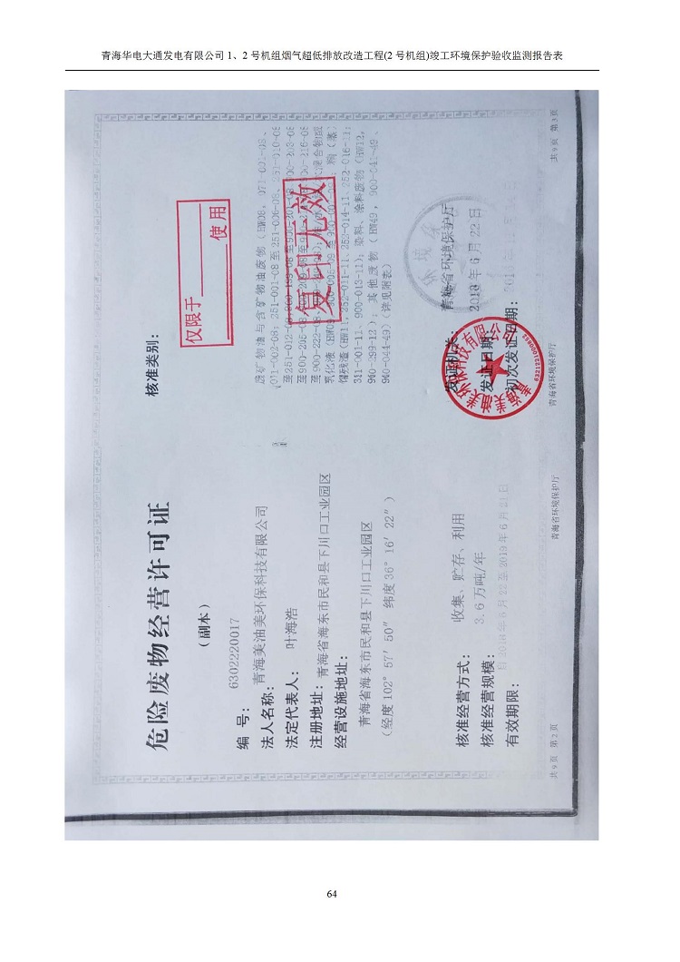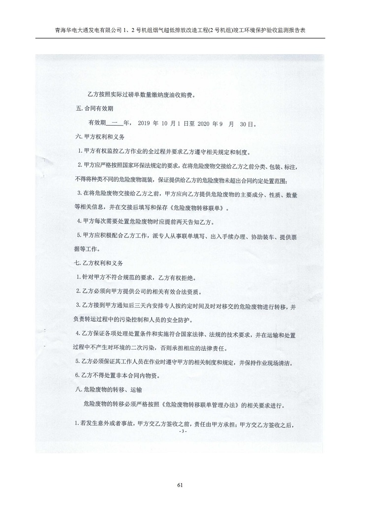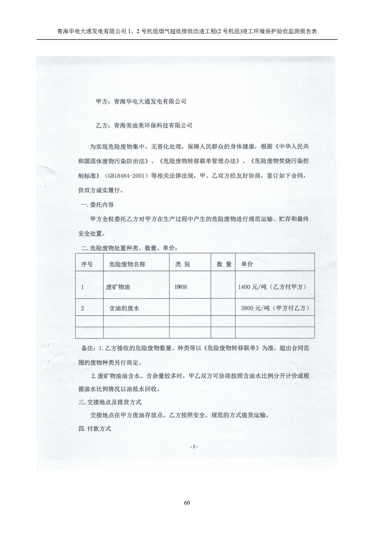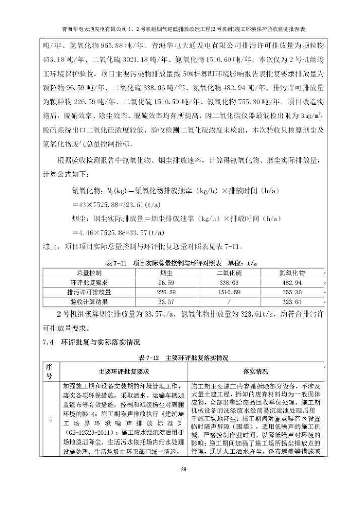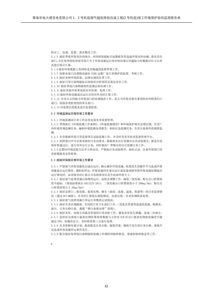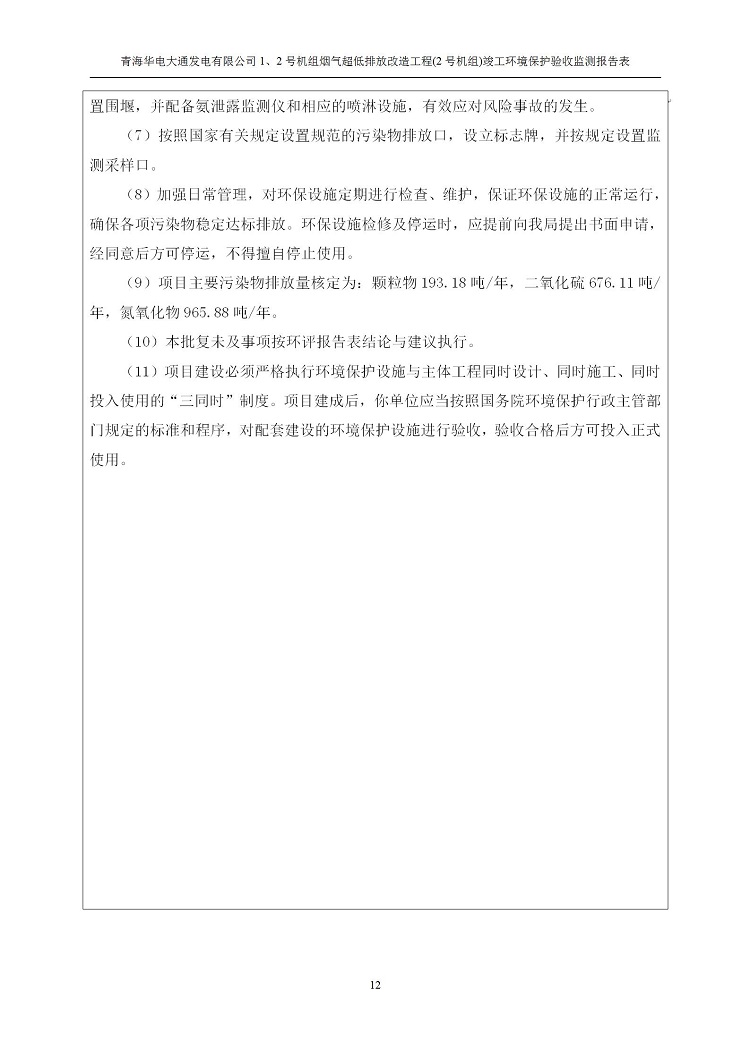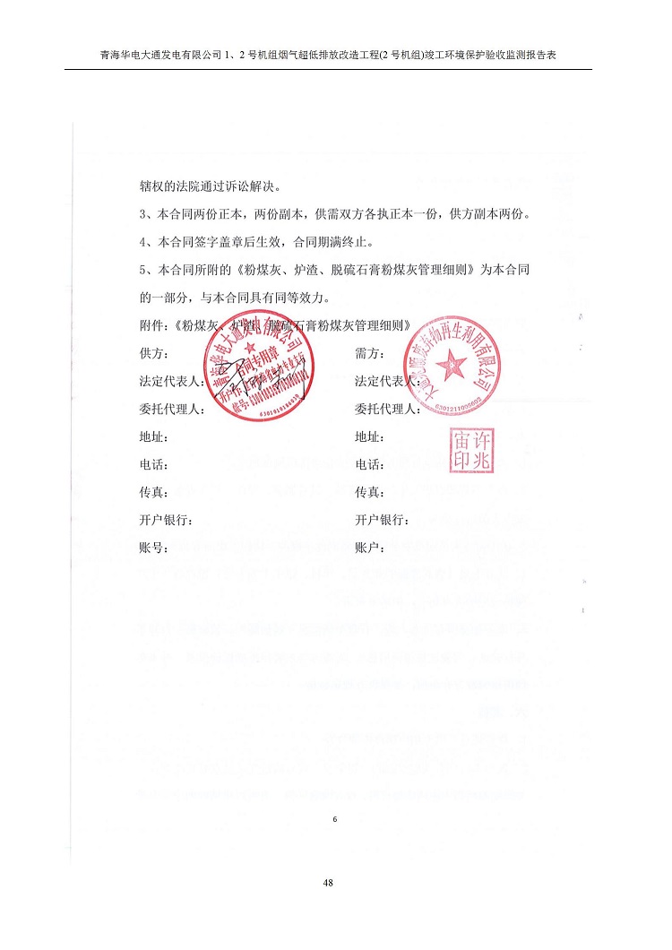 根據(jù)中華人民共和國國務院令第682號《國務院關于修改〈建設項目環(huán)境保護管理條例〉的決定》和《建設項目竣工環(huán)境保護驗收暫行辦法》(國務院令682號),青海華電大通發(fā)電有限公司1、2號機組煙氣超低排放改造工程(2號機組) (包括竣工環(huán)境保護驗收監(jiān)測報告表和驗收意見)公示如下。 一、項目名稱:青海華電大通發(fā)電有限公司1、2號機組煙氣超低排放改造工程(2號機組) 竣工環(huán)境保護驗收監(jiān)測報告表 二、地點:青海省西寧市大通縣寧張公路31公里處 三、建設單位:青海華電大通發(fā)電有限公司 四、建設內容:2號機組煙氣超低排放改造,2號機組改造內容為脫硫系統(tǒng)保留原脫硫裝置作為一級塔,新建二級合金托盤塔串聯(lián)吸收塔;對原“1+2”電袋復合除塵器的一電場電源進行改造,對布袋除塵器濾袋進行更換;對原脫硝系統(tǒng)選擇性催化還原法(SCR)脫硝工藝加裝備用催化劑,每層催化劑增加聲波吹灰器,優(yōu)化SCR反應器入口導流板。 五、聯(lián)系人:馬世敏 六、聯(lián)系電 話:0971-6515411 七、公示時間:二〇二〇年四月二十九日至二〇二〇年五月二十八日 公示期間,對上述公示內容如有異議,請以書面形式反饋,個人須署真實姓名,單位須加蓋公章。