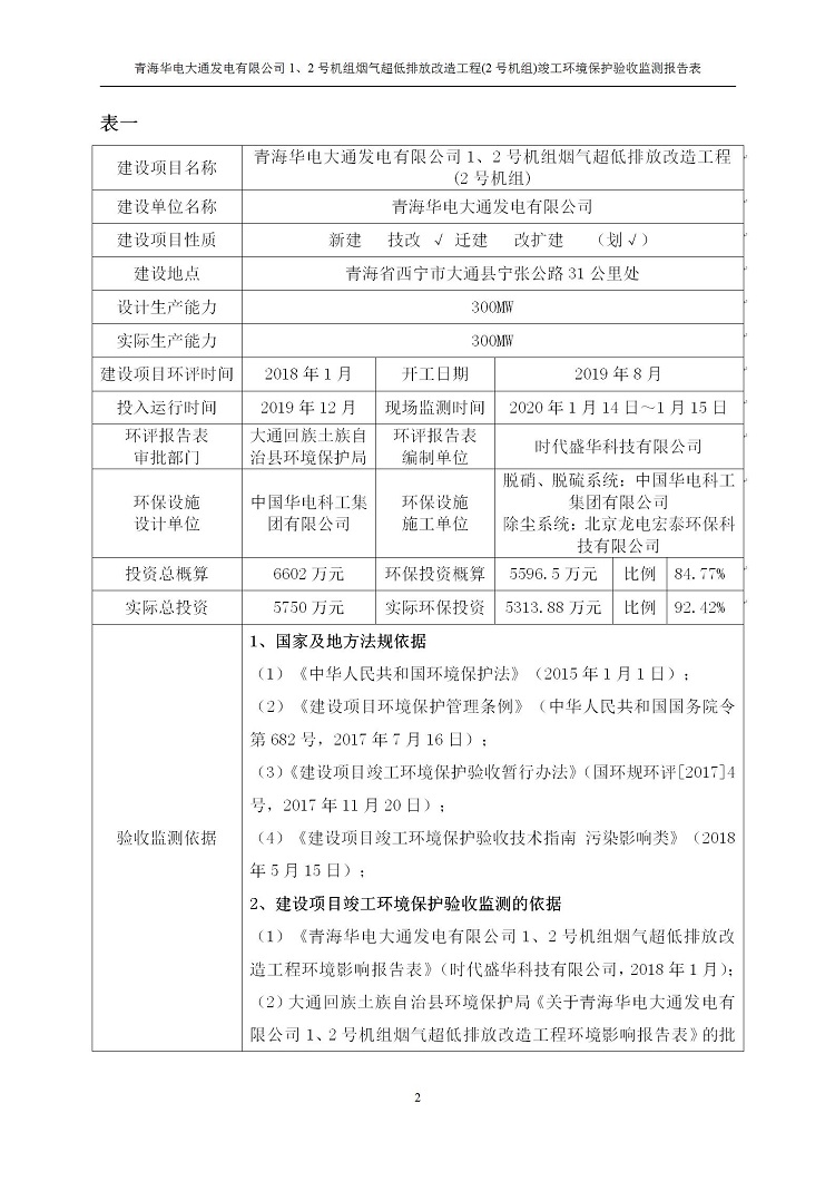 青海華電大通發(fā)電有限公司1、2號機組煙氣超低排放改造工程(2號機組) 竣工環(huán)境保護驗收監(jiān)測報告表公示發(fā)布日期:(2020-4-29) 點擊次數(shù):2582 |