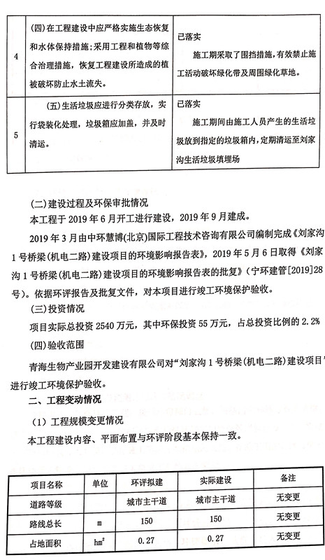 一、項(xiàng)目名稱:劉家溝1號(hào)橋梁(機(jī)電二路)建設(shè)項(xiàng)目竣工環(huán)境保護(hù)驗(yàn)收調(diào)查表